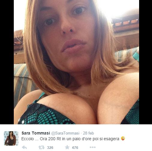 ROMA – Sara Tommasi, capelli biondi e seno in bella vista su Twitter. Décolleté in primo, primissimo piano, per l’ex showgirl, che ha cinguettato una foto decisamente hot sul suo profilo social. Il reggiseno c’è, questo va detto, ma ben poco viene lasciato all’immaginazione. La Tommasi è completamente struccata ed ha un viso piuttosto rilassato. Colpisce subito il fatto che la sua chioma sia molto più chiara di come eravamo abituati a vederla in passato.