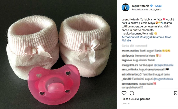 Tania Cagnotto è diventata mamma. Ad annunciarlo la stessa tuffatrice con un post sul suo profilo Instagram: ''Ce l'abbiamo fatta, oggi è nata la nostra piccola Maya. Stiamo tutti bene. Grazie per essermi stati vicini anche in questo momento magico! buonanotte a tutti''. INSTAGRAM TANIA CAGNOTTO