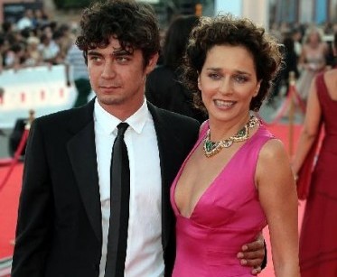 Roma. Aeroporto di Fiumicino, terminal 1 Valeria Golino e Riccardo Scamarcio insieme dopo la serata di inaugurazione del nuovo Vip Lounge Alitalia. nella foto Riccardo Scamarcio e Valeria Golino.Cartelli/LaPresse