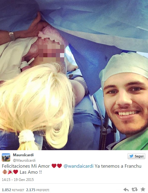 MILANO – Wanda Nara ha partorito: è nata Francesca, figlia di Mauro Icardi. Alla fine il parto più Social dell’anno è avvenuto e Wanda Nara e Mauro Icardi sono diventati genitori. Francesca è la quarta figlia di Wanda, già madre di Valentino, Constantino e Benedicto, ma è la primogenita avuta con Mauro Icardi, attaccante dell’Inter e marito di Wanda dallo scorso 27 maggio, quando i due sono convolati a nozze dopo alcuni mesi di fidanzamento molto discussi sui Social a causa della relazione turbolenta di Wanda Nara con l’ex marito Maxi Lopez. Una relazione e una gravidanza vissuti letteralmente sui Social e infatti la coppia non si è smentita nemmeno con il parto: anche la nascita è stata un evento condiviso quasi in istantanea con il popolo del web. Mauro Icardi ha immediatamente postato su Twitter una foto della moglie Wanda e della piccola Francesca ancora in sala parto.