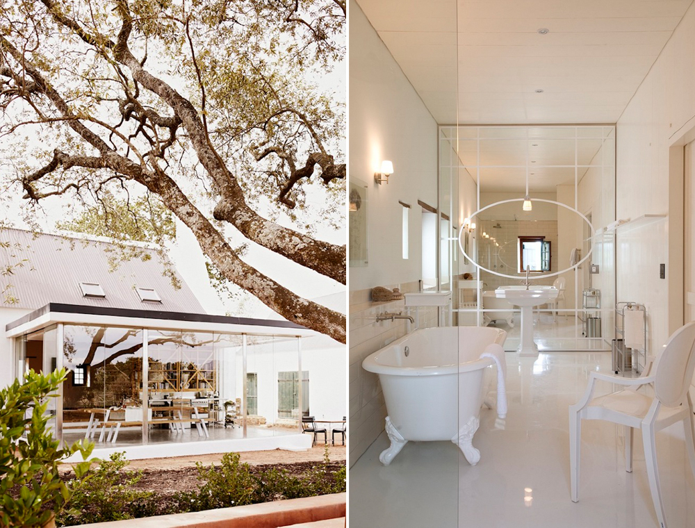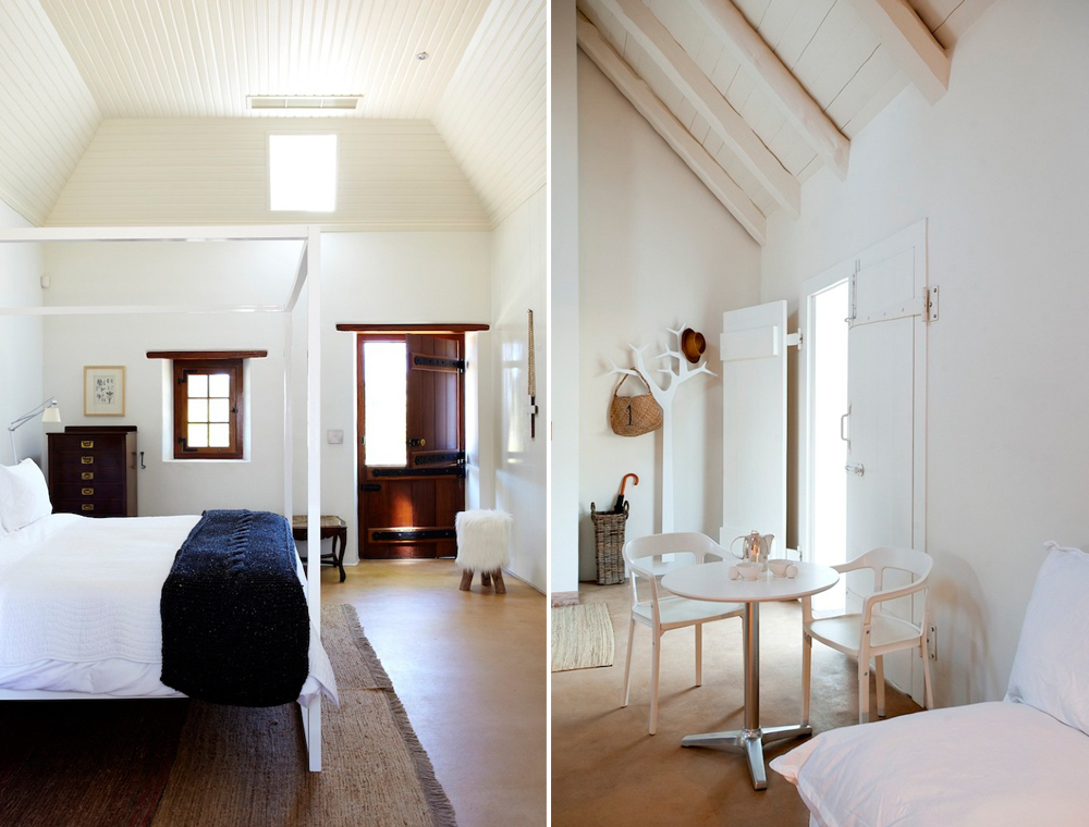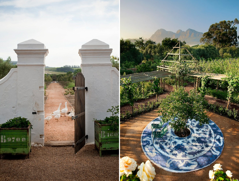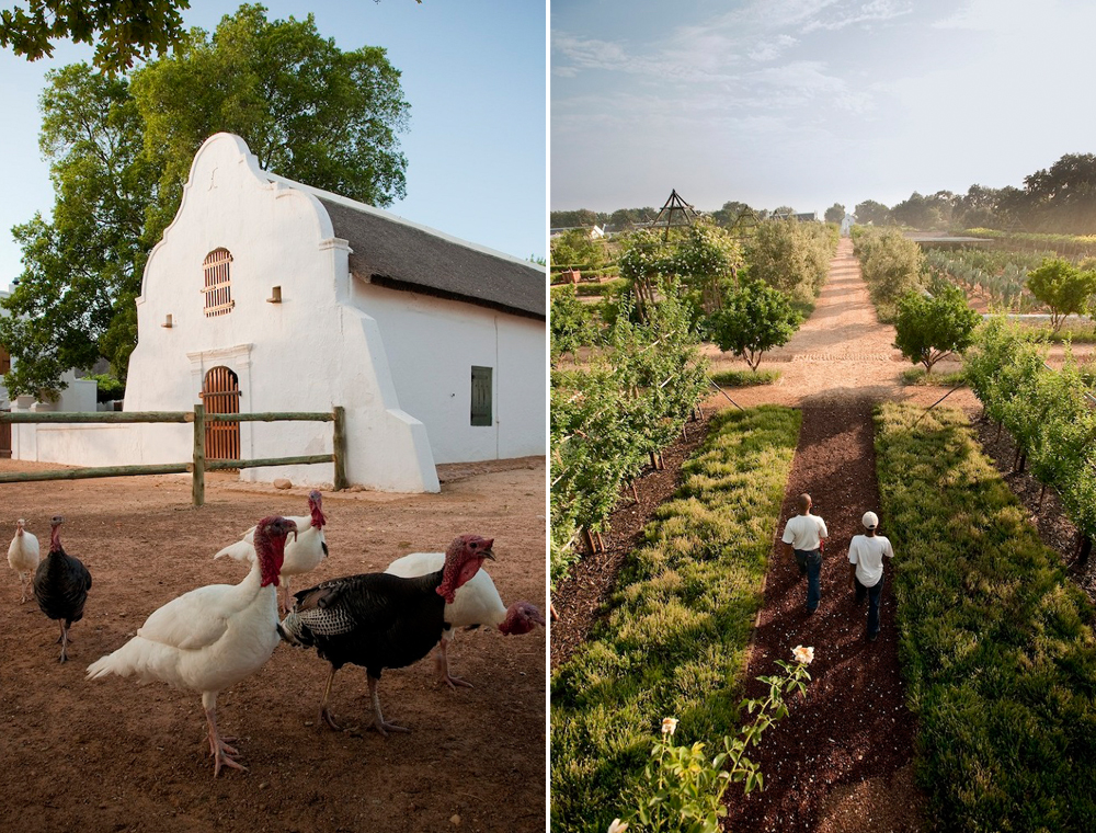 L’architettura risale al 1690, quando questo territorio era una colonia olandese. Lo stile Cape Dutch, riconoscibile dagli spioventi decorati e tondeggianti tipici delle abitazioni di Amsterdam, mescolati a elementi asiatici, è uno degli esempi meglio conservati in assoluto. In questa cornice trovano posto le stanze e i 14 cottage dove vivere un’esperienza unica. Gli arredi e le finiture degli interni si mescolano sul tema del bianco ed elementi naturali. Pezzi di design contemporaneo si mescolano con armonia quasi scontata a al legno grezzo e mobili vintage.