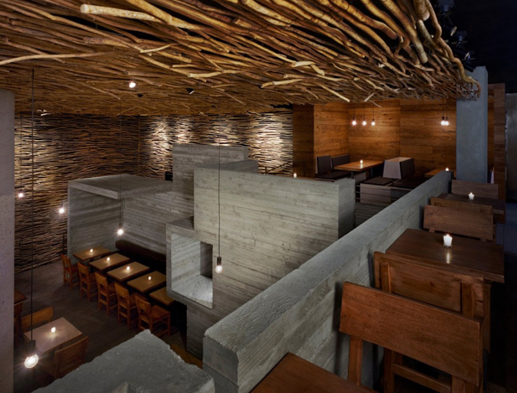 Il progetto architettonico di questo ristorante peruviano di New York, Pio Pio Restaurant, è stato curato dalla studio di Sebastian Marsical. La scoperta di una preziosa “scatola” di legno inserita all’interno di un edificio esistente nella 10th Avenue di New York, ha definito da subito le intenzioni di questo progetto: mistero, scoperta e contraddizione. La sala del ristorante, è un ambiente a doppia altezza caratterizzato da soffitto e pareti ricoperti da canne di Ocotillo (pianta molto diffusa nei deserti di USA e Messico) e luci soffuse. Si passa dai ritmi frenetici di New York alla magia fantastica che appartiene alla cultura sud-americana. E anche se il cibo è buono ma non speciale – è quello tipico della catena peruviana Pio Pio – in un ambiente così diventa straordinario.