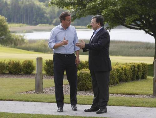 David cameron (sinistra) e il Presidente della Commissione Europea Manuel Barroso (destra)David Cameron (sinistra) look "casual" per il primo giorno di G8: camicia con maniche tirate su e senza cravatta