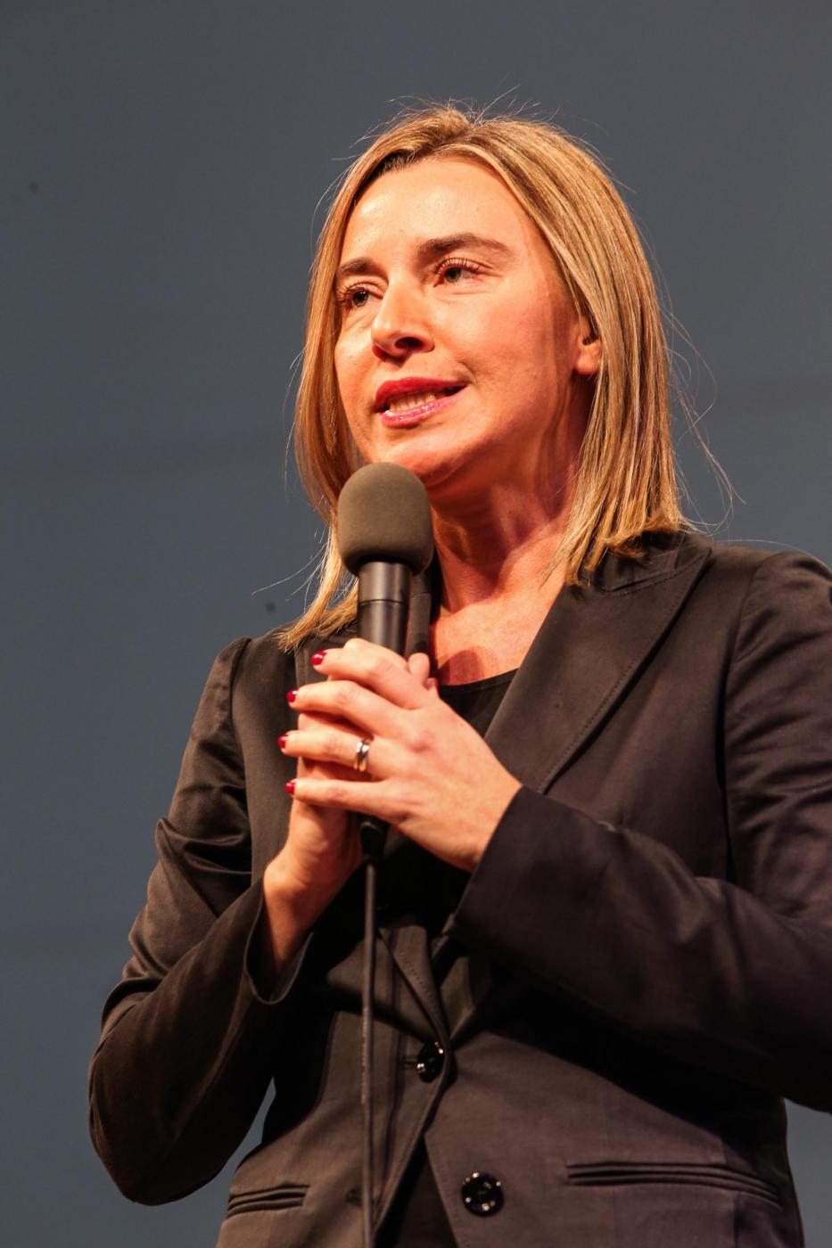 Foto Federico Bernini/LaPresse 26-10-2014, Firenze La quinta edizione della Leopolda si conclude con una lunga serie di interventi di ministri e personaggi di rilievo nazionale. nella foto: Federica Mogherini Alto rappresentante dell'Unione per gli affari esteri e la politica di sicurezza