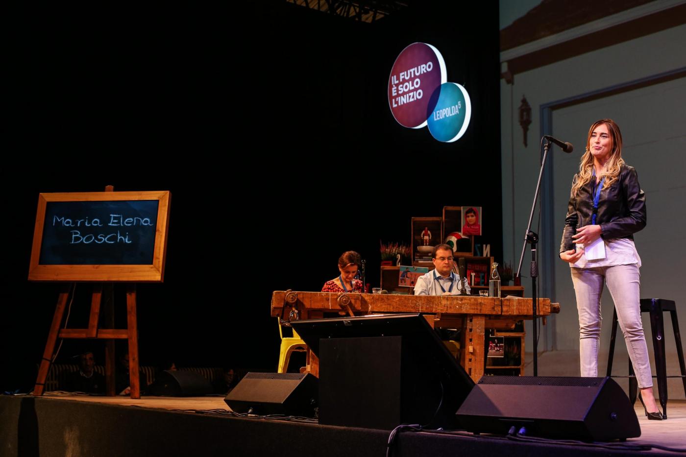 Il garage di Renzi scelto per la Leopolda 2014 fa da sfondo perfetto a tutto l’evento. Per la Boschi la giacca di pelle diventa la nuova “camicia bianca” per gli uomini. Lo stile deve essere chiaro: informale ma non sciatto, smarty ma non casuale perché, si sa, l’ordine è tutto. Così la Ministra non rinuncia certo al tacco che è un po’ la “giacca senza cravatta (che poi è troppo formale)” per gli uomini.