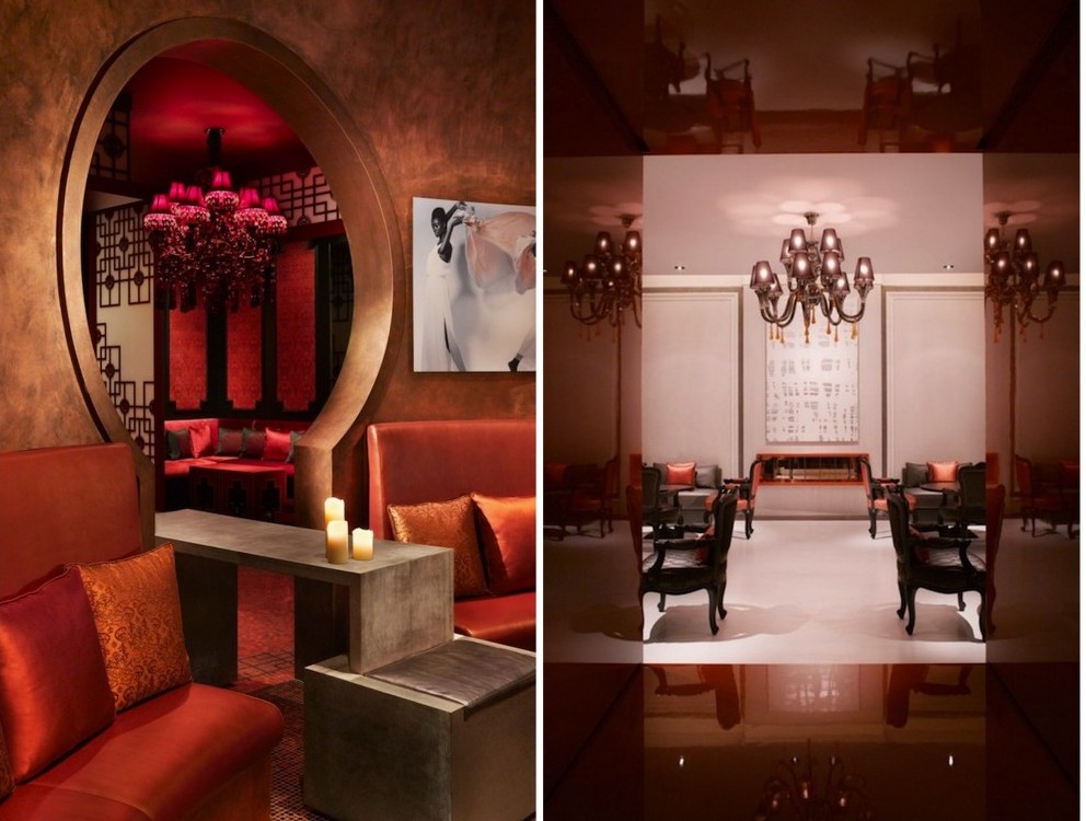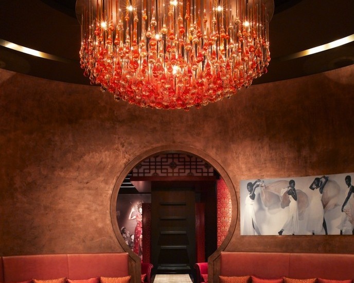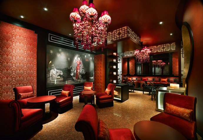 Il The Living Room è progettato dallo studio di architettura “Hirsch Bedner Associate” e le tre zone lounge si differenziano dagli elementi del design della zona geografica cui sono ispirati: così se la prima sala è di tipico stile mediorientale con tocchi di colore viola, magenta e oro ovunque, ecco che la seconda sala, il salotto europeo, possiede il tipico stile opulento di Luigi XV mentre la terza sala, di chiara ispirazione cinese, è ricca di tessuti di seta sgargianti e lampadari scintillanti.