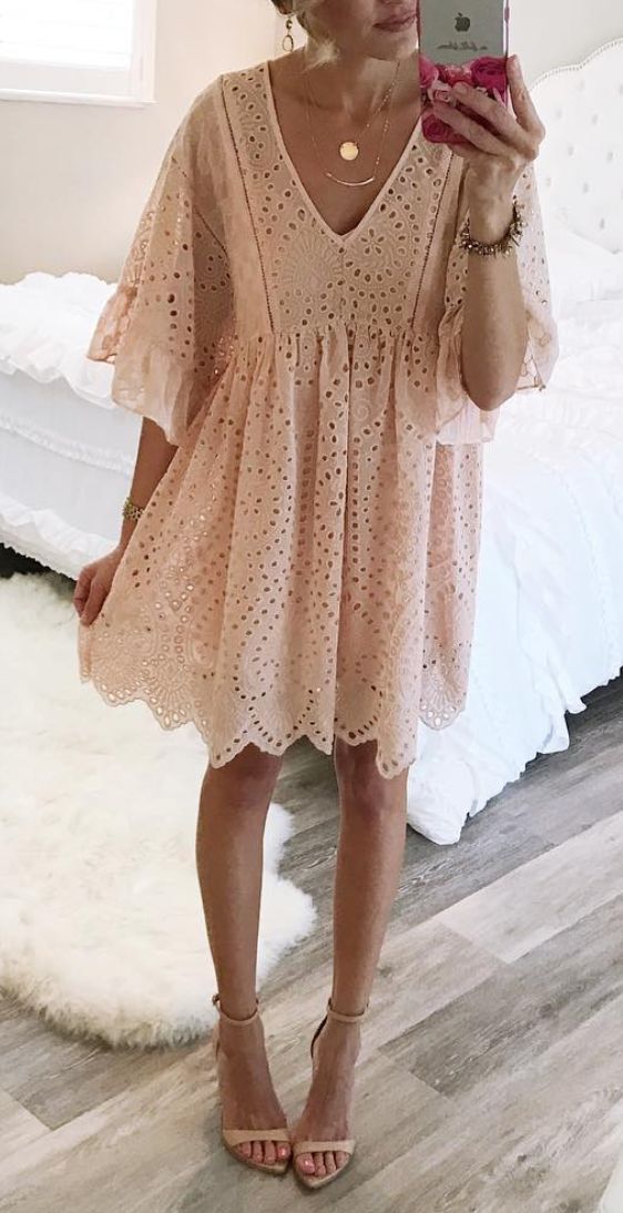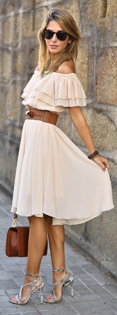 Via libera a maniche larghe o a sbuffo, davvero un must have in questa stagione. Per quanto riguarda i tessuti, va benissimo il traforato (che oltre ad essere sensuale e glamour è anche freschissimo), sì al cotone e al lino. Basta abbinare un abito bianco in sangallo ad una postina e sandali color cuoio, cappello in paglia a falda larga e capelli selvaggi che il nostro look estivo, fresco e super glamour è fatto!