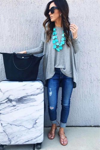 Ecc perché Ladyblitz ha deciso di pubblicare una gallery con alcune idee su cosa indossare in occasione dei viaggi, che siano in aereo, in treno o, perché no, in macchina. Ricordiamoci che la prima cosa da prendere in considerazione sono gli sbalzi di temperatura! Che la vostra destinazione sia il mare, la montagna o una città d’arte, sicuramente il clima di partenza sarà molto diverso di quello di arrivo. Per non parlare poi dei viaggi aerei che contano anche degli scali. In questo caso, seguire il consiglio della nonna: vestirsi a strati. Portarsi t-shirt e felpa o maglioncino così da essere pronti in caso di freddo, ambienti con aria condizionata al massimo o, peggio, per evitare di morirsi di caldo.