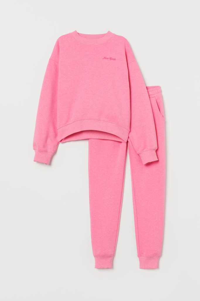 La prima è una tuta rosa a due pezzi a 29.90 euro, disponibile anche nella variante grigia. Viene così presentata sul sito del brand svedese: “Maglia a maniche lunghe e joggers in morbido tessuto felpato. Maglia squadrata con spalle basse e piccolo ricamo in alto. Scollo, polsini e bordo inferiore a costine. Joggers con elastico rivestito e coulisse in vita, tasche laterali. Bordo a costine a fondo gamba. Morbido interno spazzolato”.