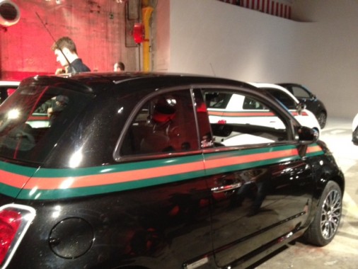 Il Direttore Creativo di Gucci Frida Giannini e Fiat hanno invitato Jefferson Hack (Editor in Chief di Dazed & Confused e Another Magazine), Chris Sweeney (Regista per NOWNESS), Olivier Zahm (Editor in Chief di Purple Fashion Magazine), Franca Sozzani (Editor in Chief di Vogue Italia), e Alexi Tan (Regista) ad ideare e realizzare short film ispirati alla Fiat 500 by Gucci. Gli ospiti – in prevalenza stampa internazionale e opinion leader – sono stati accolti da Lapo Elkan presso la sede milanese di Independent Ideas dove, per l’occasione, è stato allestito uno speciale Drive – in 500 by Gucci. Gli invitati hanno così potuto assistere alla proiezione stando comodamente seduti su una Fiat 500C by Gucci.