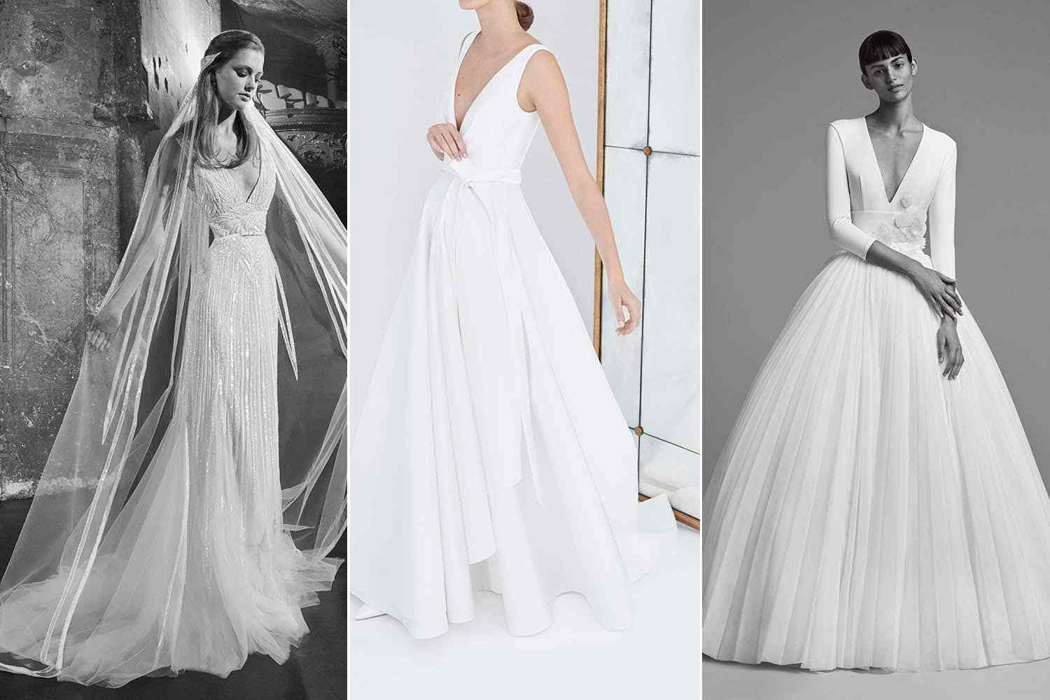 V come: valorizza il decolleté! I nuobi abiti da sposa sembrano fatti apposta per esaltare il seno e la scollatura a V sembra una delle più strategiche, soprattutto se è spessa e decorata con uno strato di chiffon, che regala volume alle forme. Das evitare, ovviamente, se hai troppo seno.