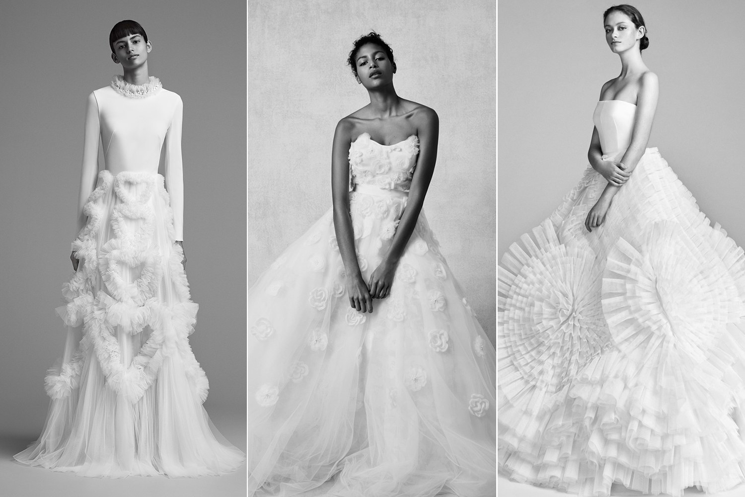 I modelli più classici e romantici si alternano a quelli più glamour e sensuali. Tulle, ricami e dettagli luminosi sono i protagonisti degli abiti da sposa. Dopotutto, ogni futura sposa in occasione del suo giorno speciale vuole brillare! Altri protagonisti dei nuovi modelli di abiti sono i fiocchi, vero must have di stagione.