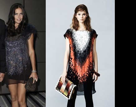 Per l’occasione Adriana ha scelto un abito Fendi della collezione pre-fall 2012-13 molto corto che metteva in risalto le sue gambe slanciate. L’abito, impreziosito da paillettes e da piume sulle spalle, donava molto alla modella che ha scoperto da poco di aspettare un bambino.