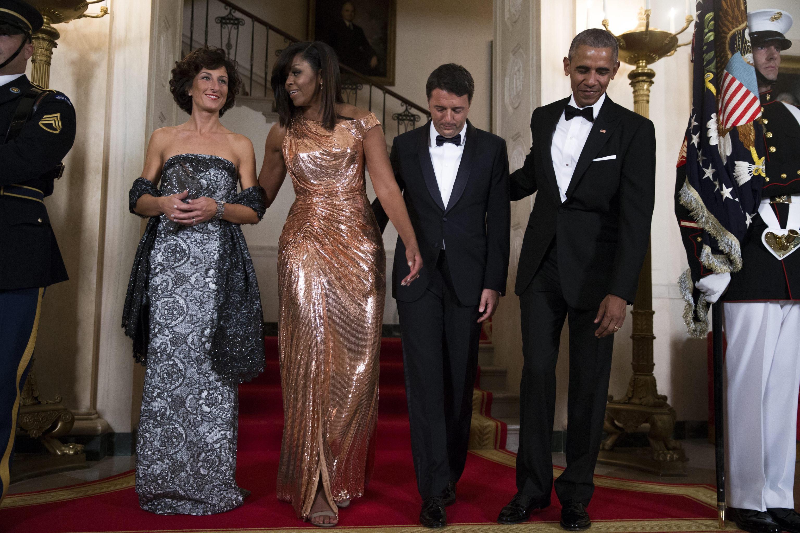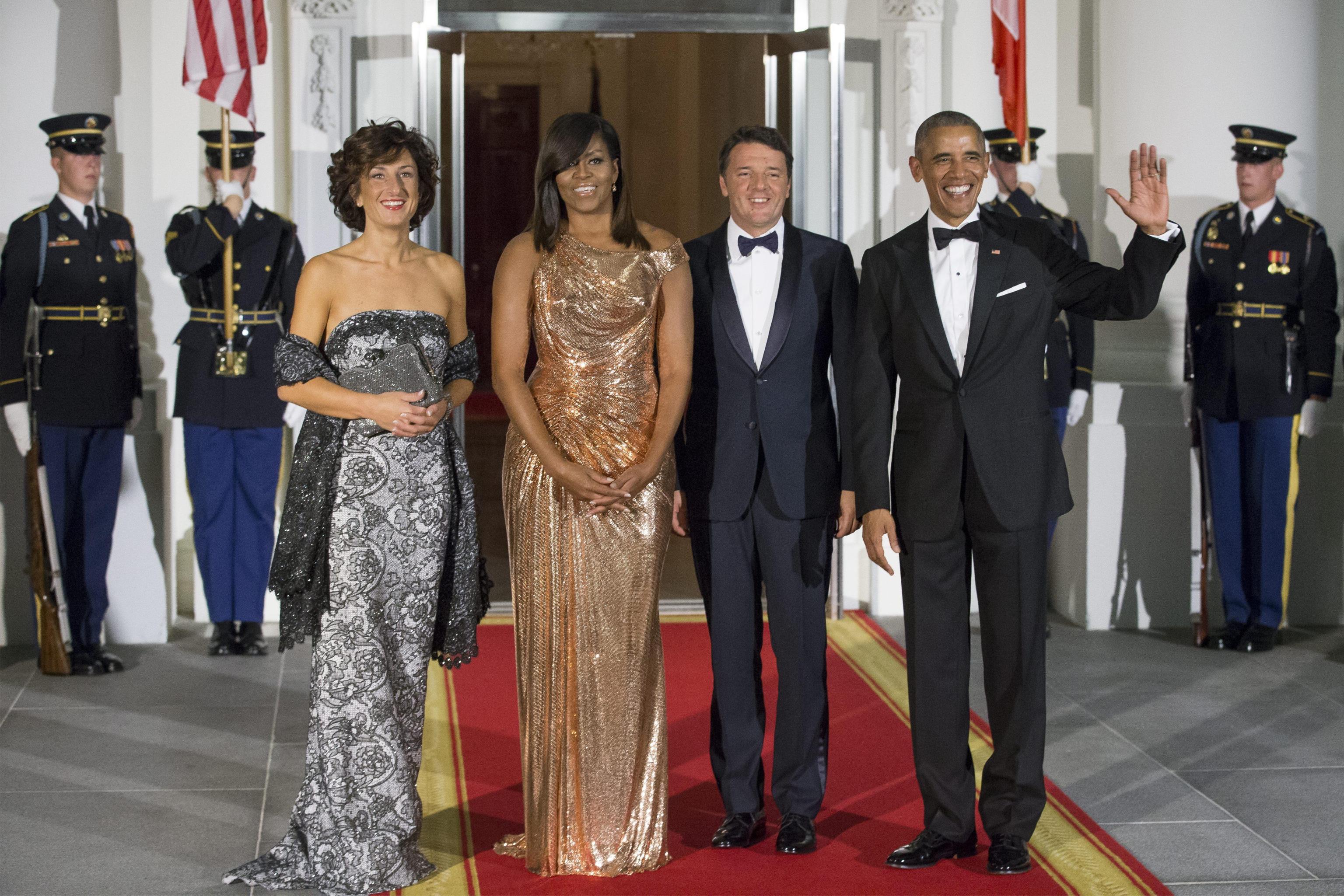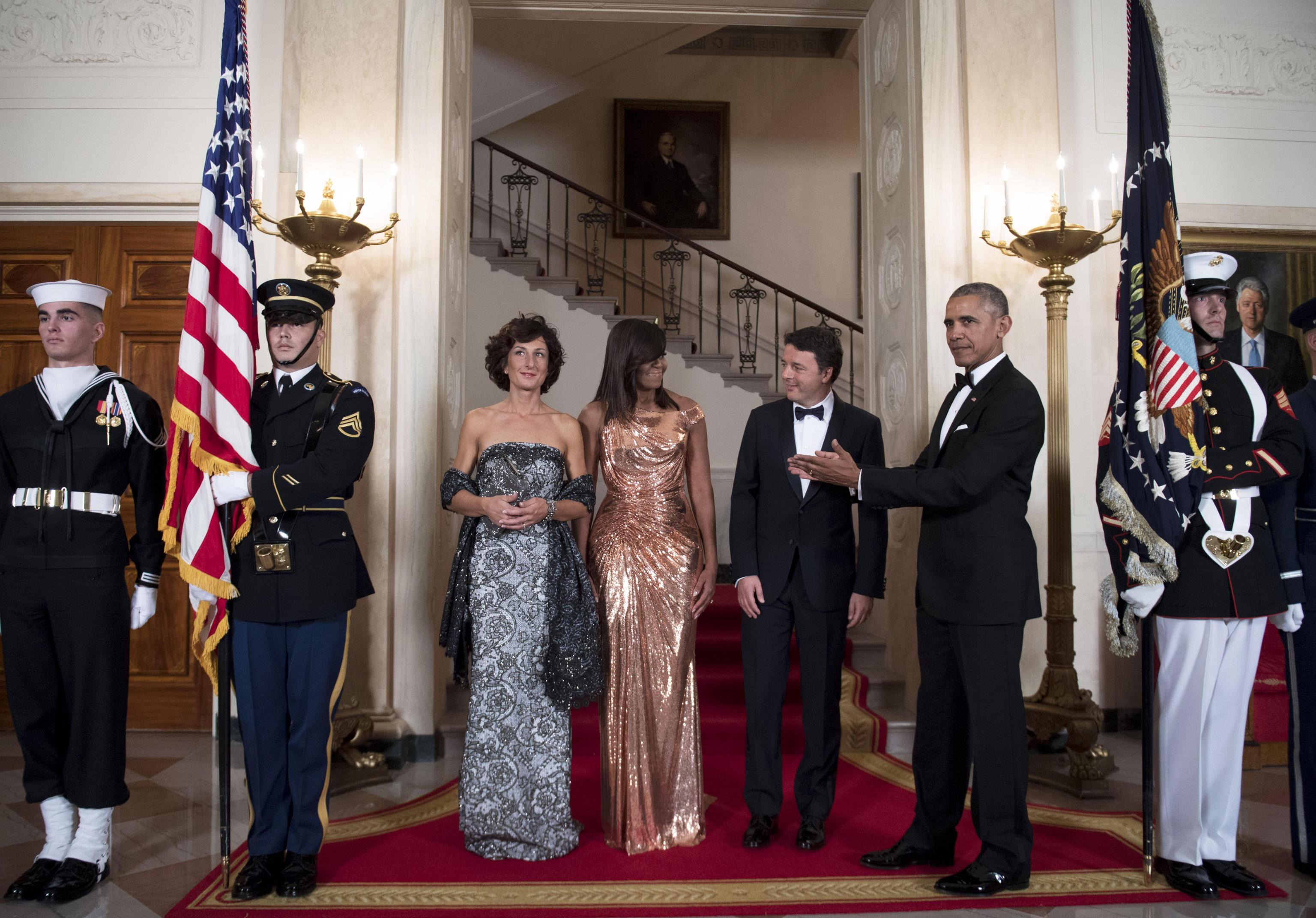 WASHINGTON – Agnese Renzi, look bocciato: questa volta Scervino è no FOTO. L’abbiamo apprezzata con l’abito rosa antico firmato Valentino con cui ha fatto i saluti all’America: Agnese Renzi, sulle scale che dall’aereo l’hanno portata dritta tra le braccia di Michelle Obama, ci ha fatto sognare con il tocco romantico, classico e allo stesso tempo glamour dell’abito dal sapore retrò svolazzante, impalpabile e fashion. Ottima scelta anche per il secondo abito, firmato ancora una volta Valentino: un tubino in pizzo e macramè che calzava alla perfezione ad Agnese. Il colore poi, un verde bosco dell’anno scorso, dona moltissimo alla first lady italiana che, non a caso, lo sceglie spesso per le sue mise.