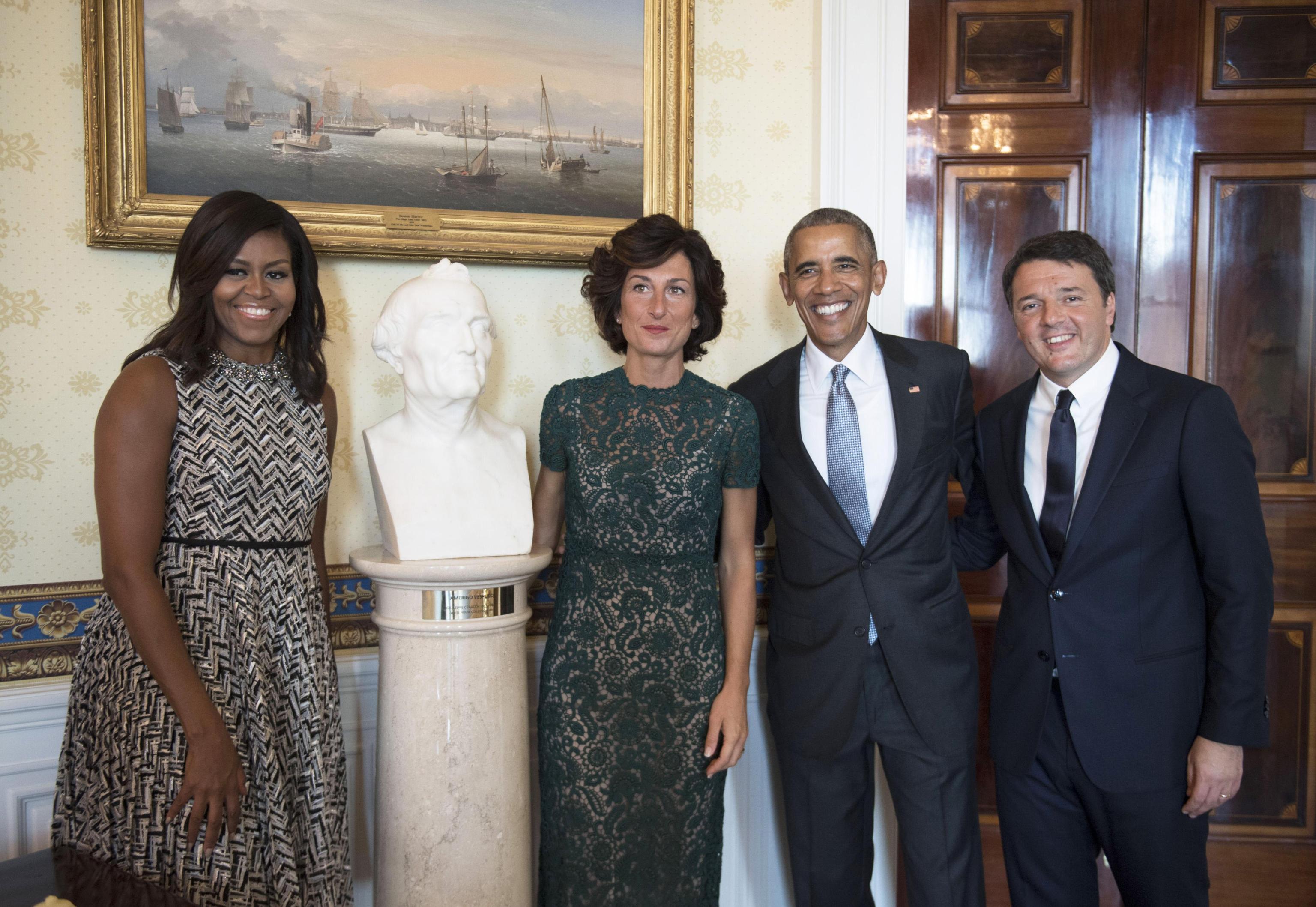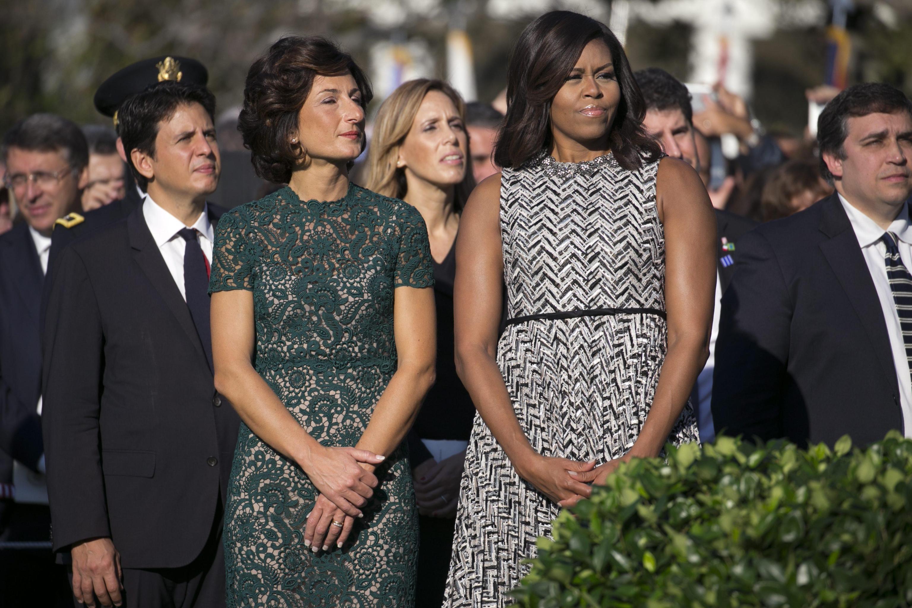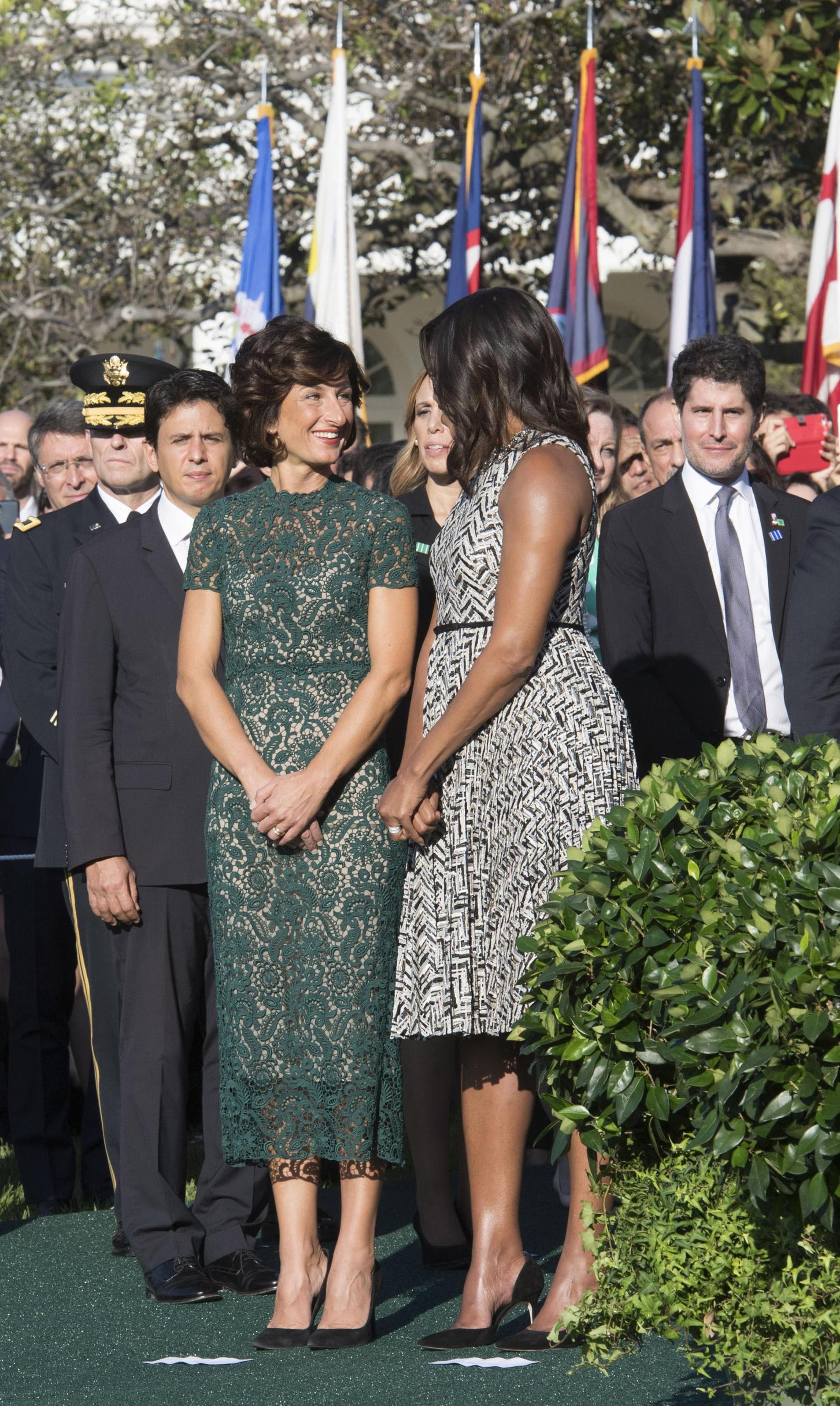 WASHINGTON – Agnese Renzi, look bocciato: questa volta Scervino è no FOTO. L’abbiamo apprezzata con l’abito rosa antico firmato Valentino con cui ha fatto i saluti all’America: Agnese Renzi, sulle scale che dall’aereo l’hanno portata dritta tra le braccia di Michelle Obama, ci ha fatto sognare con il tocco romantico, classico e allo stesso tempo glamour dell’abito dal sapore retrò svolazzante, impalpabile e fashion. Ottima scelta anche per il secondo abito, firmato ancora una volta Valentino: un tubino in pizzo e macramè che calzava alla perfezione ad Agnese. Il colore poi, un verde bosco dell’anno scorso, dona moltissimo alla first lady italiana che, non a caso, lo sceglie spesso per le sue mise.