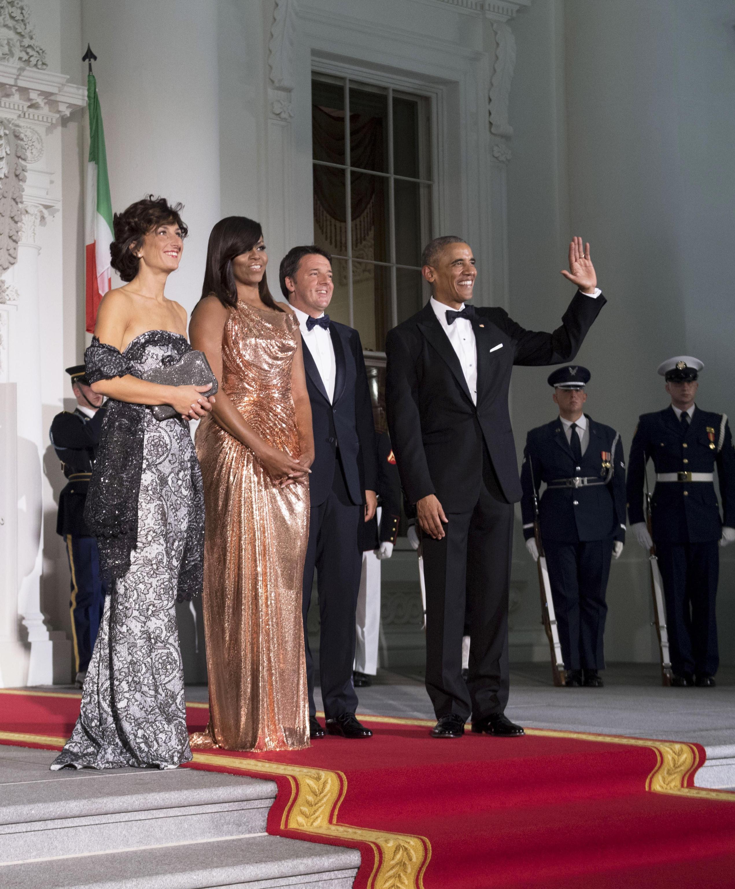 Le dolenti note arrivano con il look scelto per la cena di Stato e non per via del menù (impeccabile) ma per l’abito sfoggiato da Agnese Landini. Se Michelle Obama ha incantato tutti con il suo abito in oro rosa firmato atelier Versace, la nostra Agnese arriva seconda in classifica e non solo per via dell’argento dell’abito ma perché questa volta Ermanno Scervino non ci è piaciuto affatto. Il vestito, lungo e dritto, non ha reso giustizia al corpo slanciato di Agnese. Tutto troppo rigido, l’abito ha reso la nostra first lady oltremodo algida e priva di flessibilità. Ciliegina sulla torta di un look completamente sbagliato, il tessuto: questa volta Agnese sembra avvolta da un copridivano.