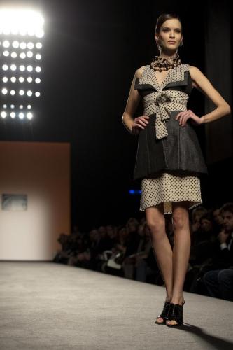 Ancora, un altro carattere fondamentale di questa edizione di Altaroma è stata sicuramente la collezione di Camillo Bona, incentrata prettamente sul tema della “matrioska”: la scelta della matrioska sta a simboleggiare la fertilità e la trasformazione unite al gusto peri il naif, ma in realtà la matrioska permette allo stilista di giocare con sovrastrutture di tessuti proposti sovrapposti: trame e intrecci tra merletti, cammei e cristalli. Gli abiti vanno per la maggiore, infatti la sfilata propone per lo più vestiti, il tutto giocando tra sovrapposizioni e colori cangianti.