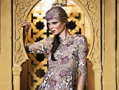 Zaghrouta, la particolare canzone matrimoniale cantata dalle donne arabe, apre la sfilata autunno inverno 2014-2015 Giada Curti Haute Couture. In questa atmosfera arabeggiante, compare l’abito da sposa: una casacca minimal-chic ricoperta di cristalli.