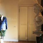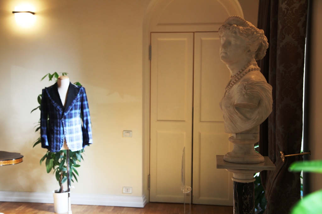A completare la poesia, oggetti d’arte di grande valore e il sottofondo di note jazz di un pianoforte, che accompagnavano un piccolo ma intenso percorso in cui venivano spiegate le fasi di creazione di una giacca: dal disegno su tela alla prima intelaiatura, senza tasche, per poi passare all’attaccatura del collo e al suo rivestimento.