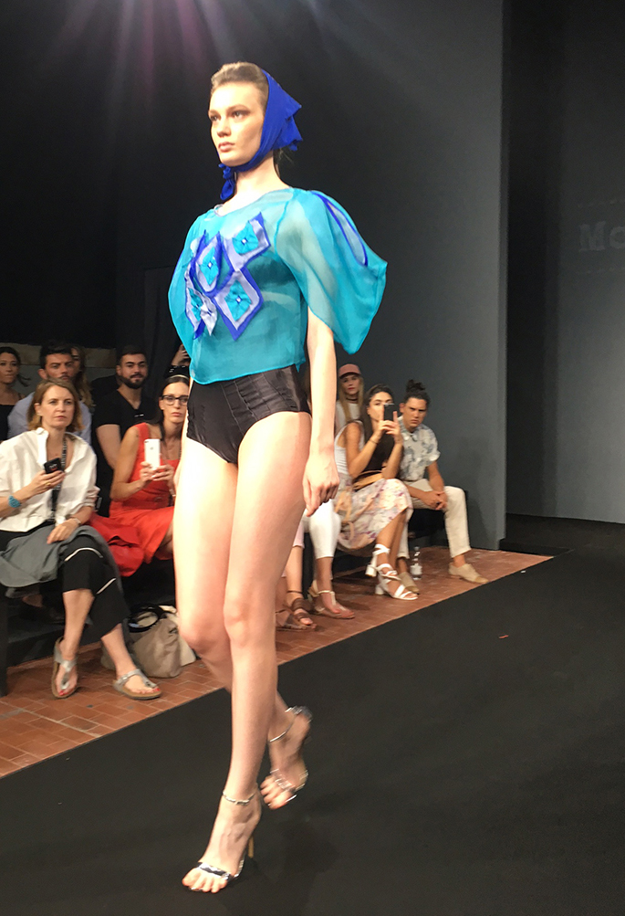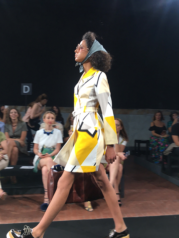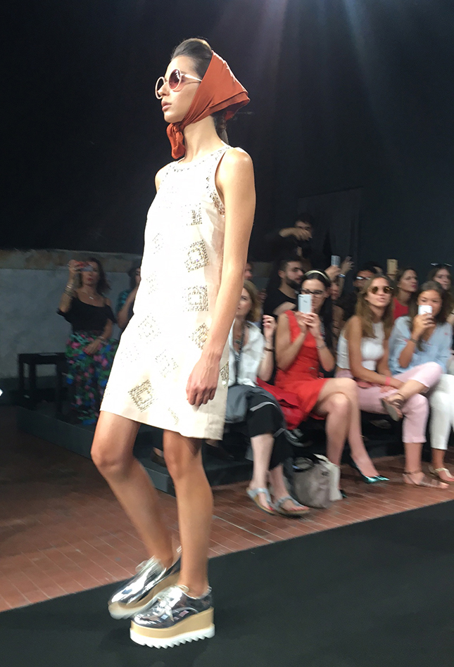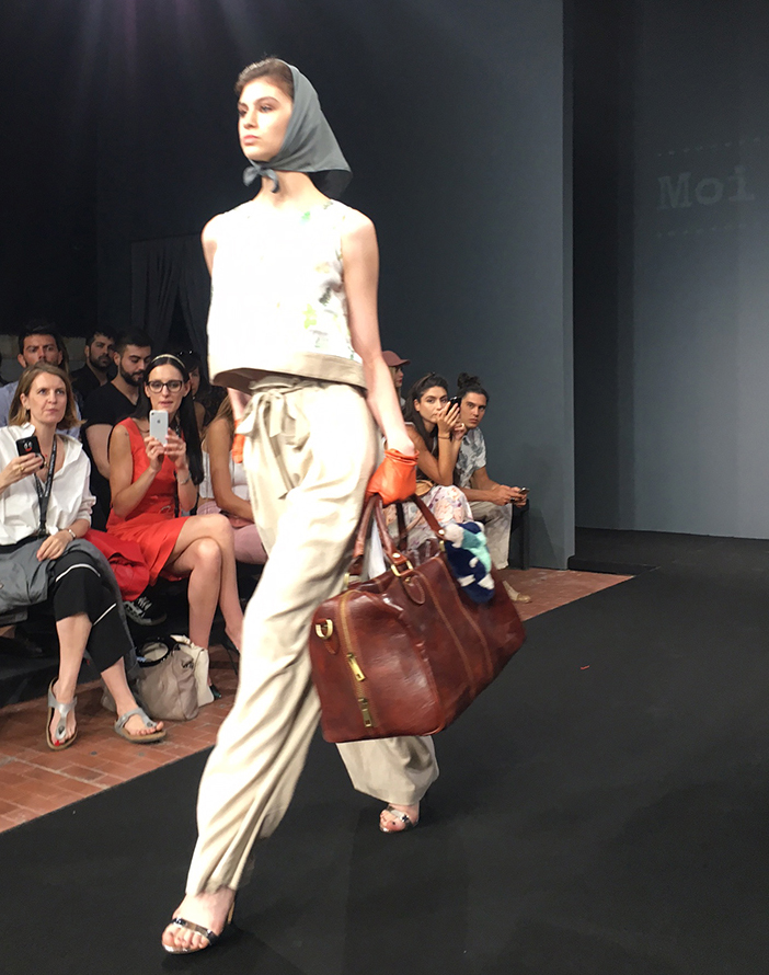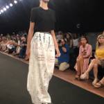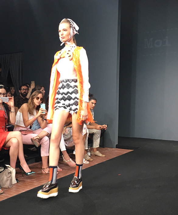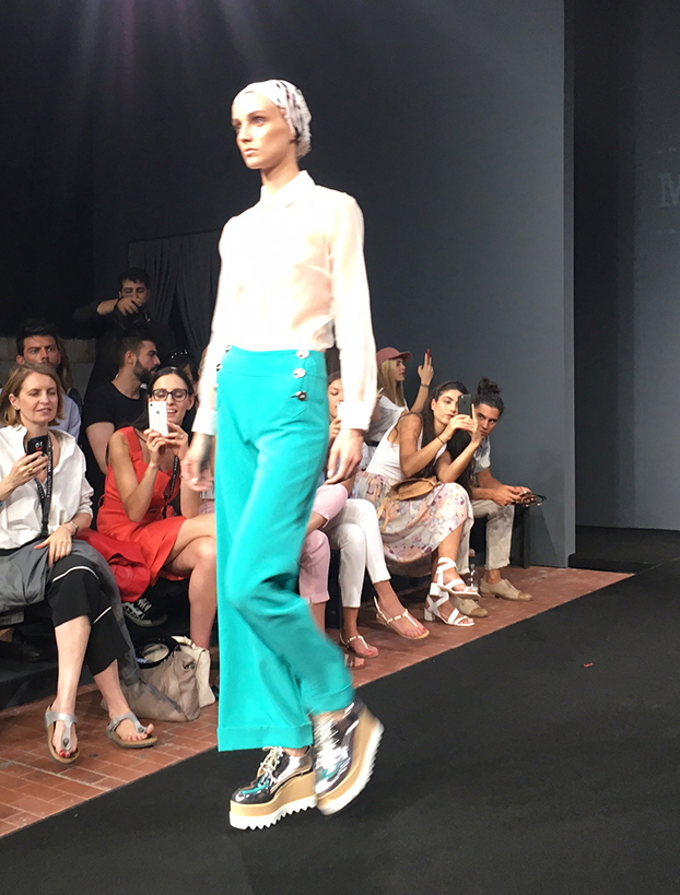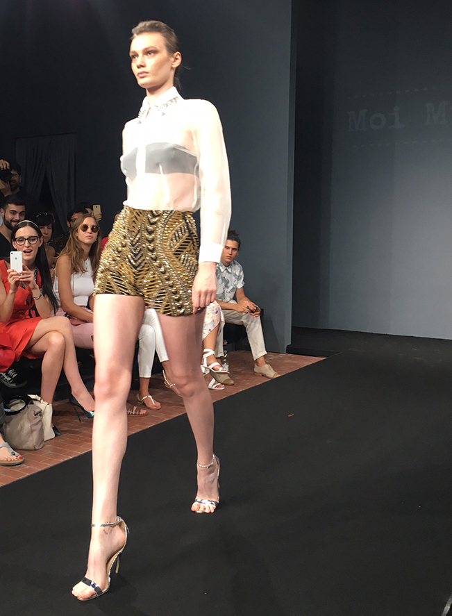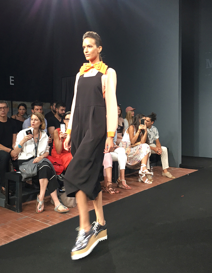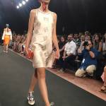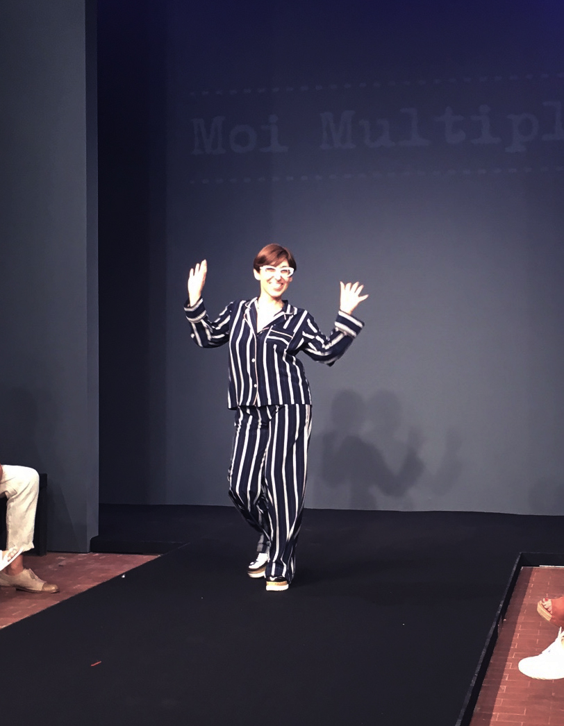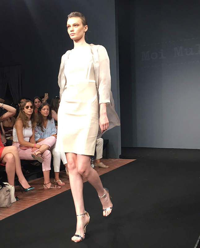 Moi Multiple sfila nell’ambito di Fashion Hub, sezione dedicata alla scoperta e alla promozione di talenti emergenti, anche se Francesca Ceccon ha alle spalle anni di collaborazione con importanti brand internazionali, il marchio Moi Multiple è giovane all’anagrafe, ma anche giovane d’aspetto. Sono infatti capi allegri, freschi e vivaci e questa collezione intitolata “Plus-que-parfait” è una rilettura in chiave giocosa degli abiti anni ’60, in particolare dei vestiti della nonna della stilista, donna estremamente elegante che la Ceccon ricorda come cristallizzata in quell’epoca dove la moda era fatta di gonne trapezio, tessuti broccati e applicazioni preziose. Plus-que parfait è infatti la ricerca del sublime, quella ricerca che la sua sofisticatissima nonna le ha involontariamente trasmesso e che Francesca ha saputo ironizzare e dissacrare con i suoi indumenti perfettamente sagomati e la sua grande attenzione alla modellistica, ma con quel tocco di leggerezza e festosità che trasmettono le sue collezioni.
