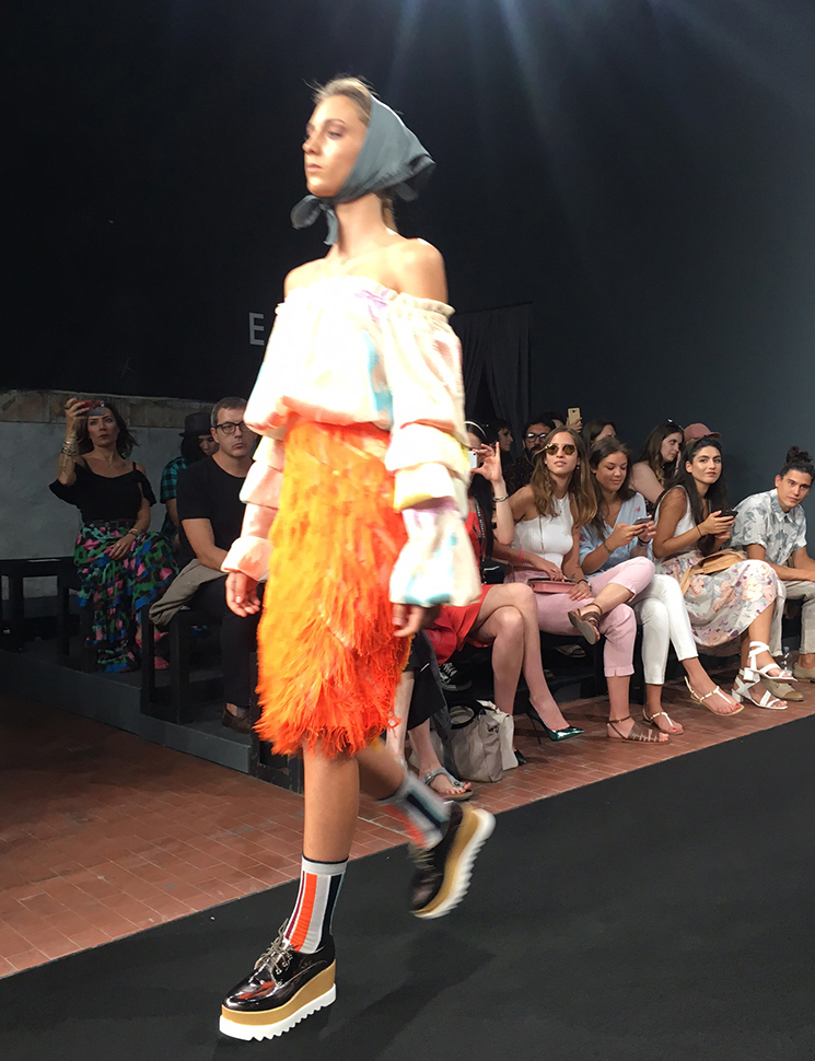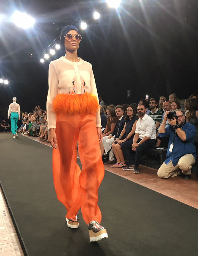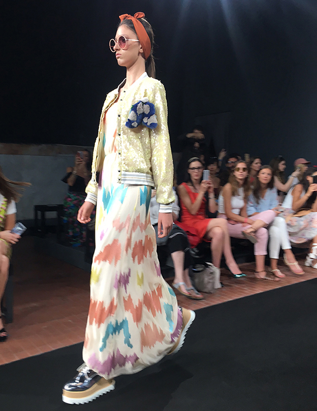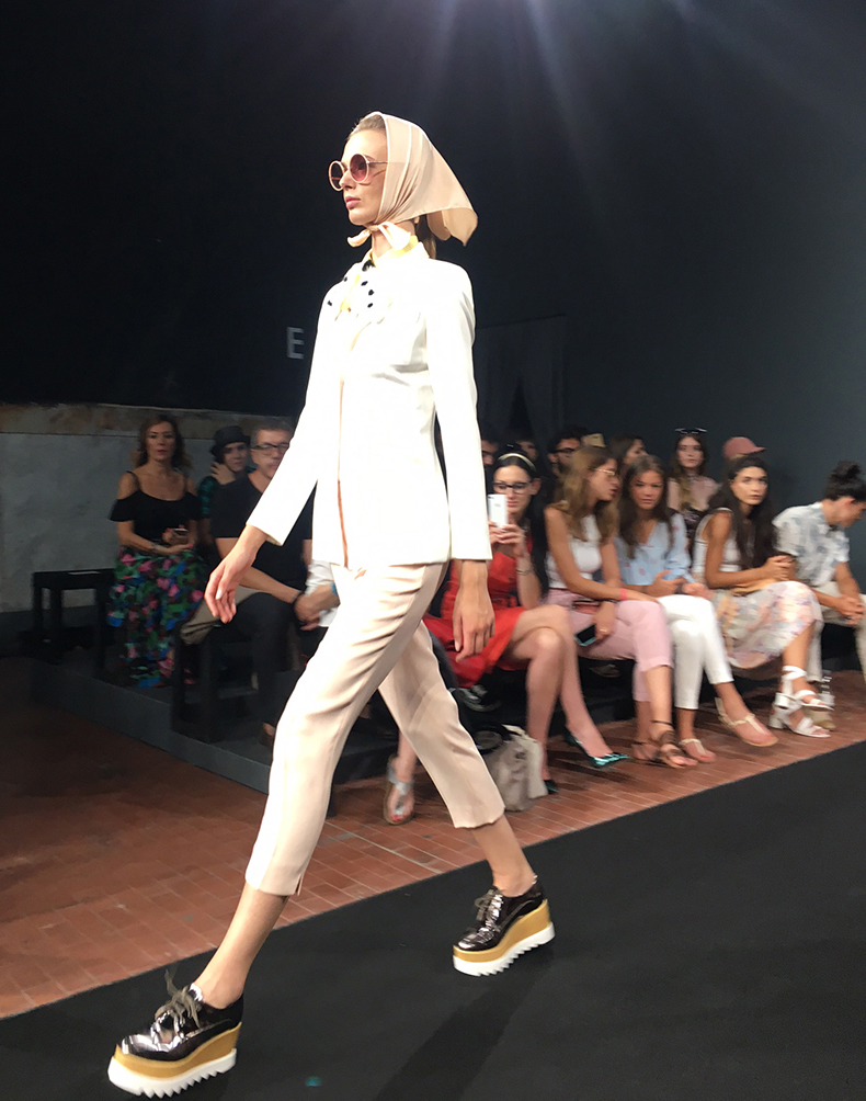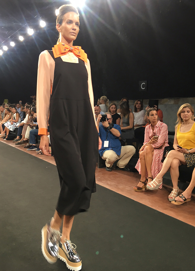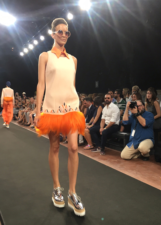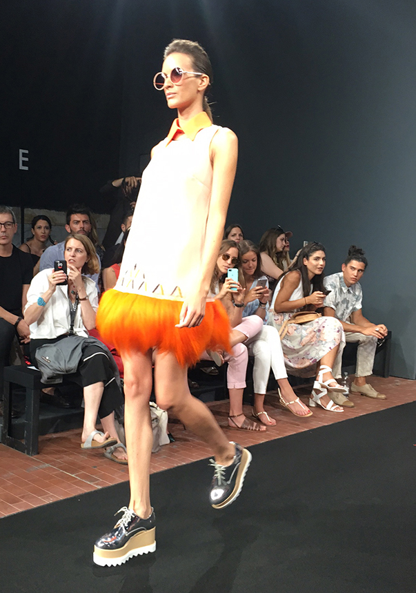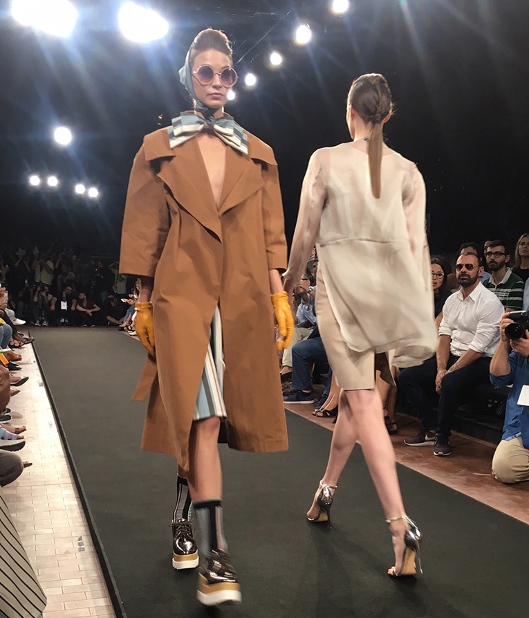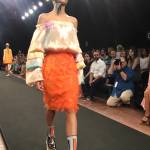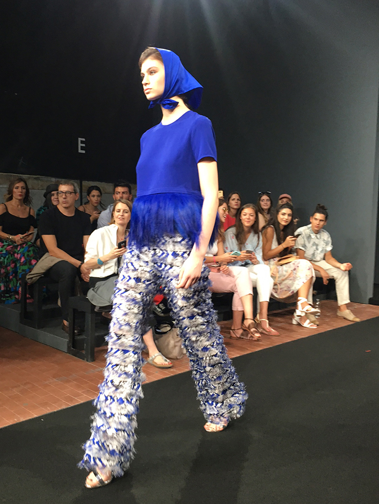 Moi Multiple sfila nell’ambito di Fashion Hub, sezione dedicata alla scoperta e alla promozione di talenti emergenti, anche se Francesca Ceccon ha alle spalle anni di collaborazione con importanti brand internazionali, il marchio Moi Multiple è giovane all’anagrafe, ma anche giovane d’aspetto. Sono infatti capi allegri, freschi e vivaci e questa collezione intitolata “Plus-que-parfait” è una rilettura in chiave giocosa degli abiti anni ’60, in particolare dei vestiti della nonna della stilista, donna estremamente elegante che la Ceccon ricorda come cristallizzata in quell’epoca dove la moda era fatta di gonne trapezio, tessuti broccati e applicazioni preziose. Plus-que parfait è infatti la ricerca del sublime, quella ricerca che la sua sofisticatissima nonna le ha involontariamente trasmesso e che Francesca ha saputo ironizzare e dissacrare con i suoi indumenti perfettamente sagomati e la sua grande attenzione alla modellistica, ma con quel tocco di leggerezza e festosità che trasmettono le sue collezioni.