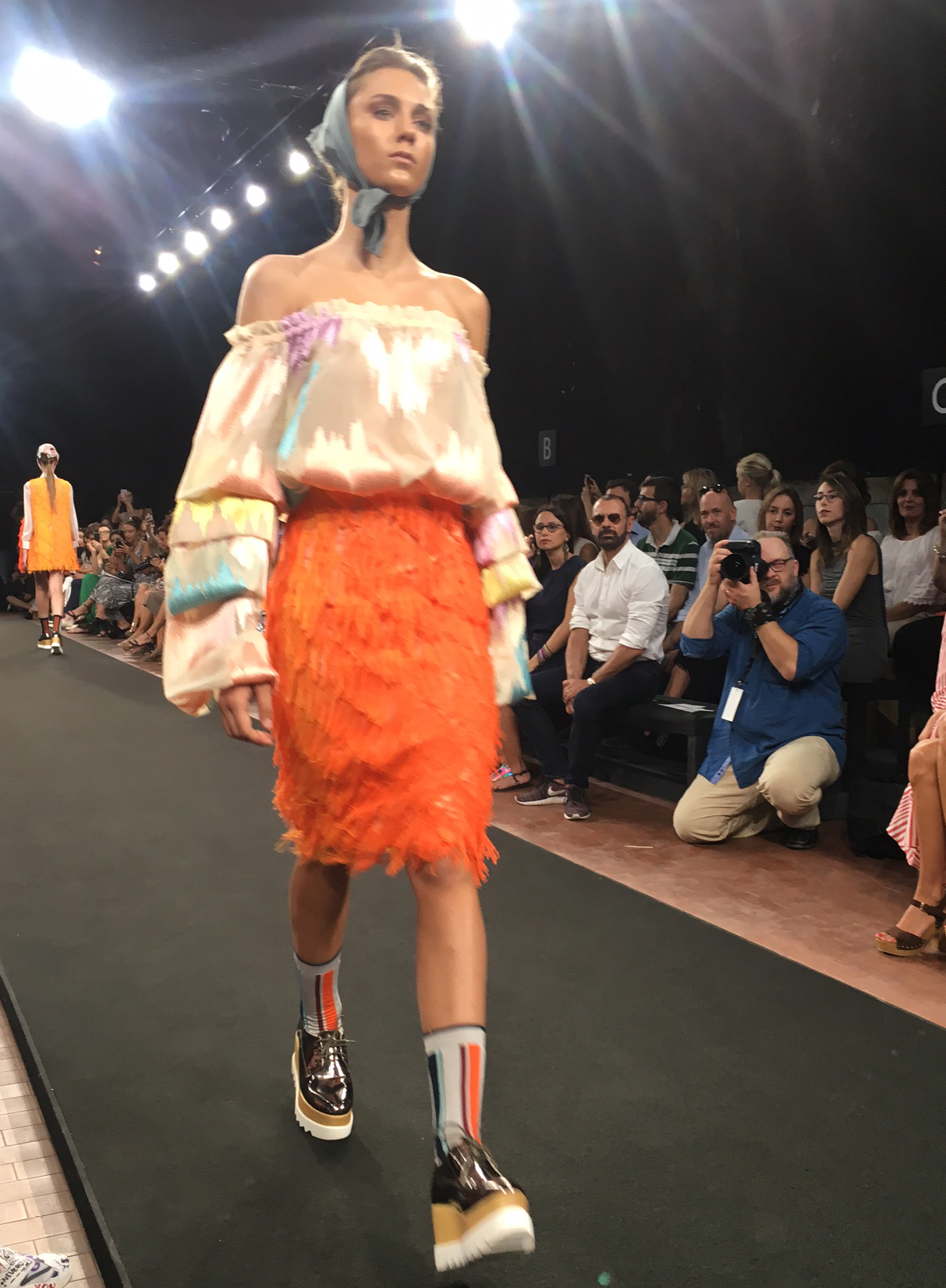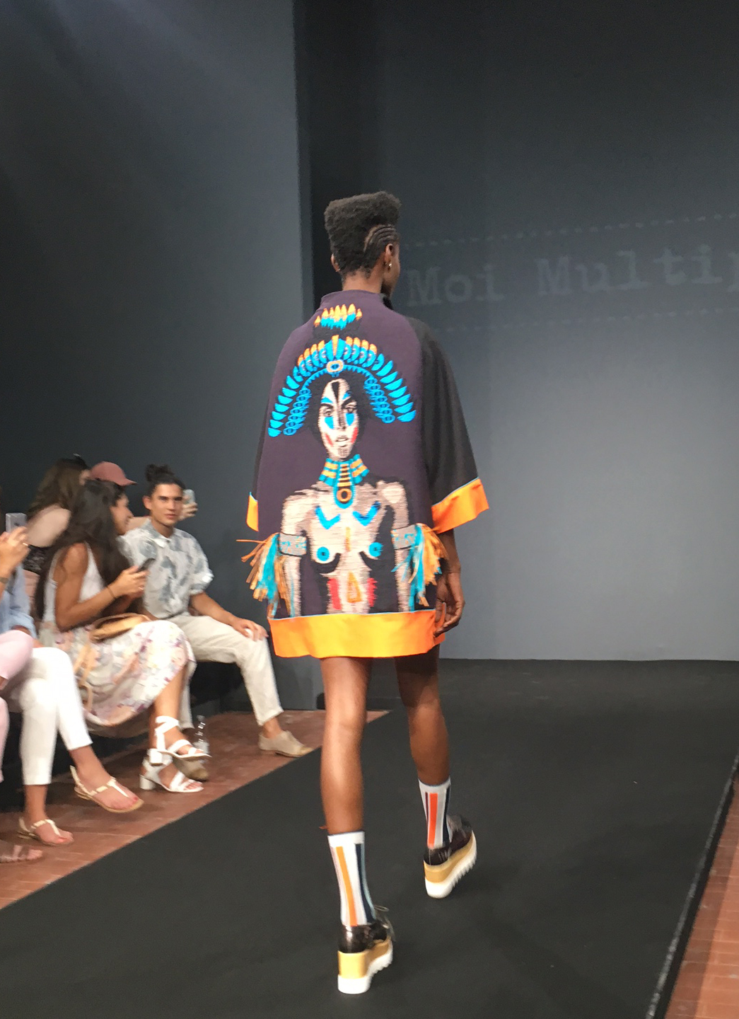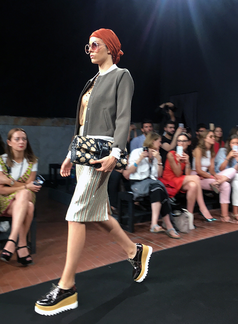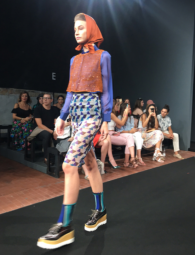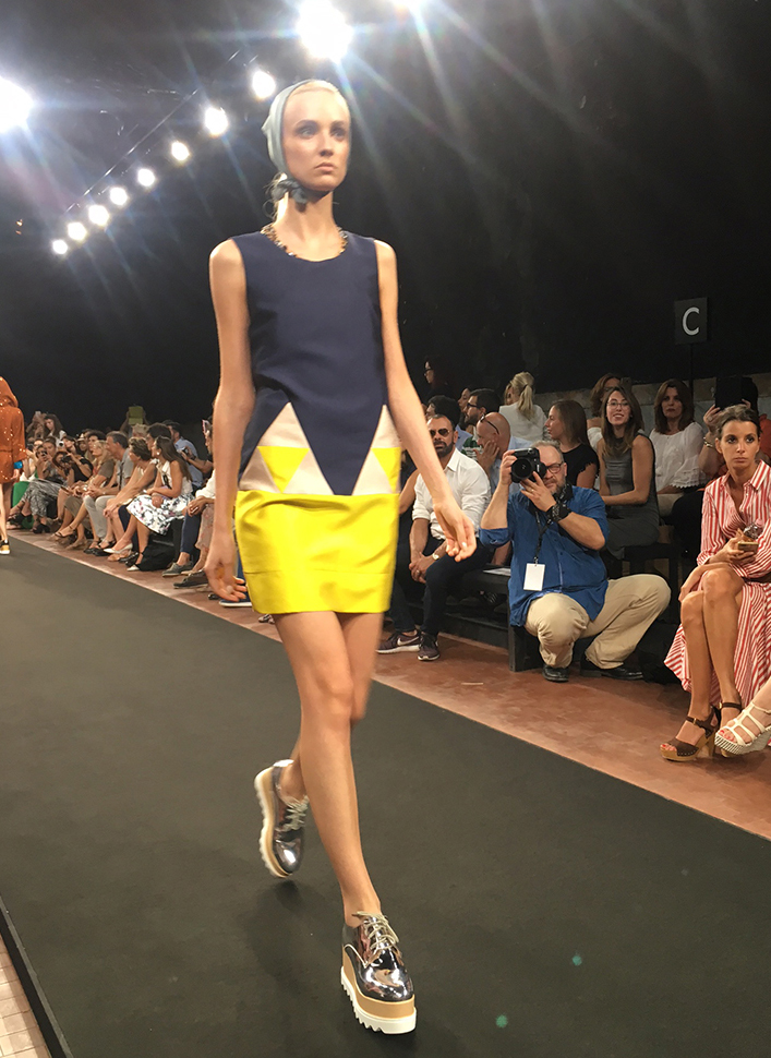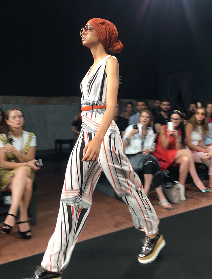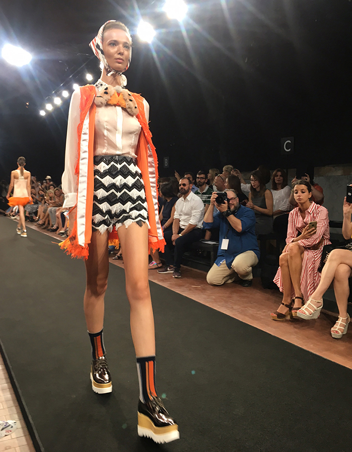 Moi Multiple sfila nell’ambito di Fashion Hub, sezione dedicata alla scoperta e alla promozione di talenti emergenti, anche se Francesca Ceccon ha alle spalle anni di collaborazione con importanti brand internazionali, il marchio Moi Multiple è giovane all’anagrafe, ma anche giovane d’aspetto. Sono infatti capi allegri, freschi e vivaci e questa collezione intitolata “Plus-que-parfait” è una rilettura in chiave giocosa degli abiti anni ’60, in particolare dei vestiti della nonna della stilista, donna estremamente elegante che la Ceccon ricorda come cristallizzata in quell’epoca dove la moda era fatta di gonne trapezio, tessuti broccati e applicazioni preziose. Plus-que parfait è infatti la ricerca del sublime, quella ricerca che la sua sofisticatissima nonna le ha involontariamente trasmesso e che Francesca ha saputo ironizzare e dissacrare con i suoi indumenti perfettamente sagomati e la sua grande attenzione alla modellistica, ma con quel tocco di leggerezza e festosità che trasmettono le sue collezioni.