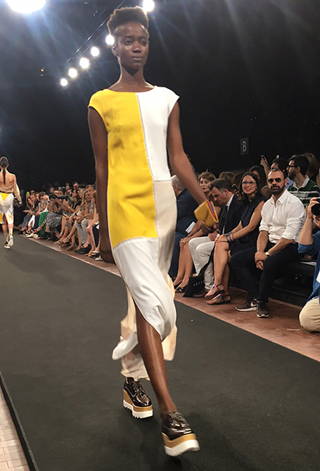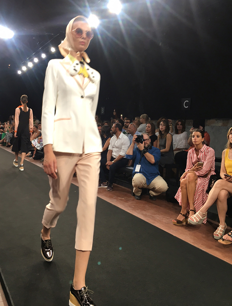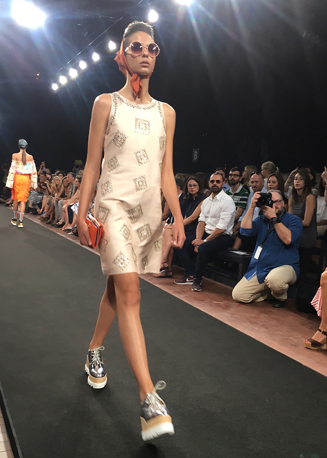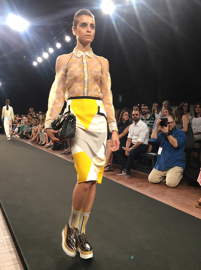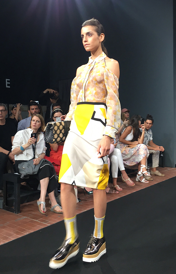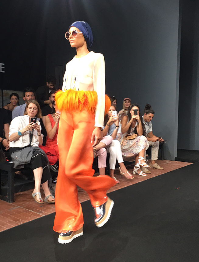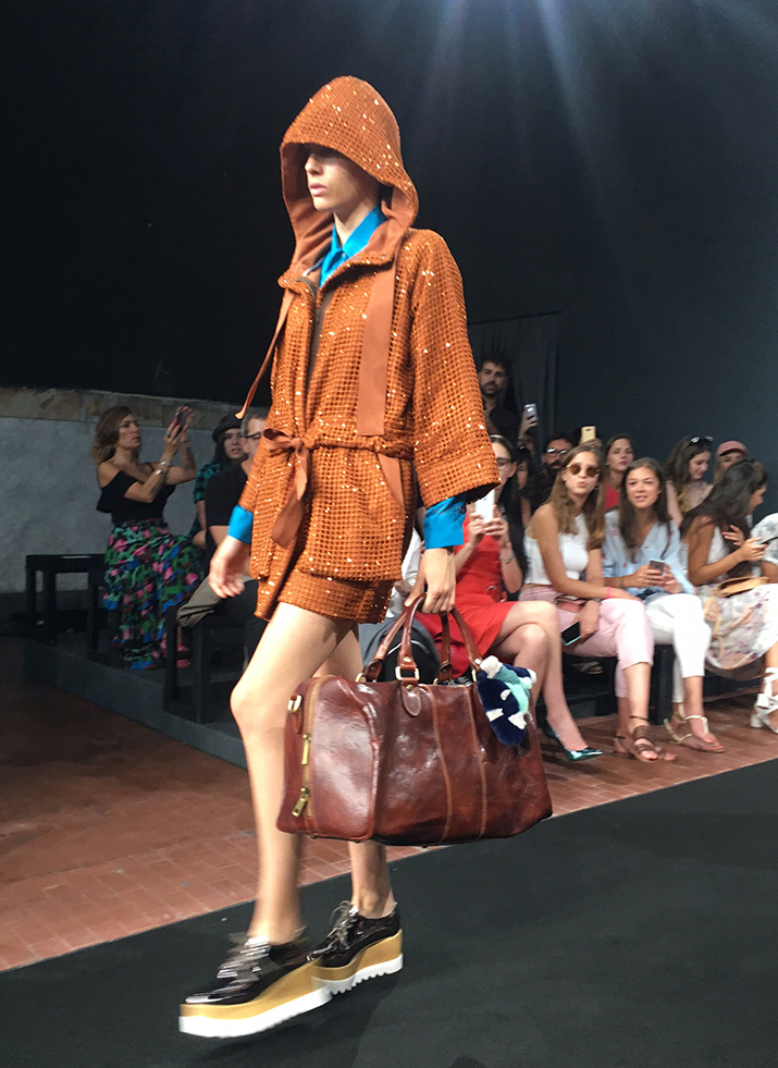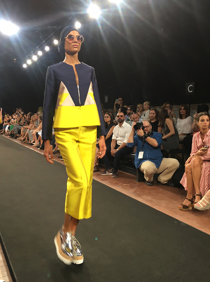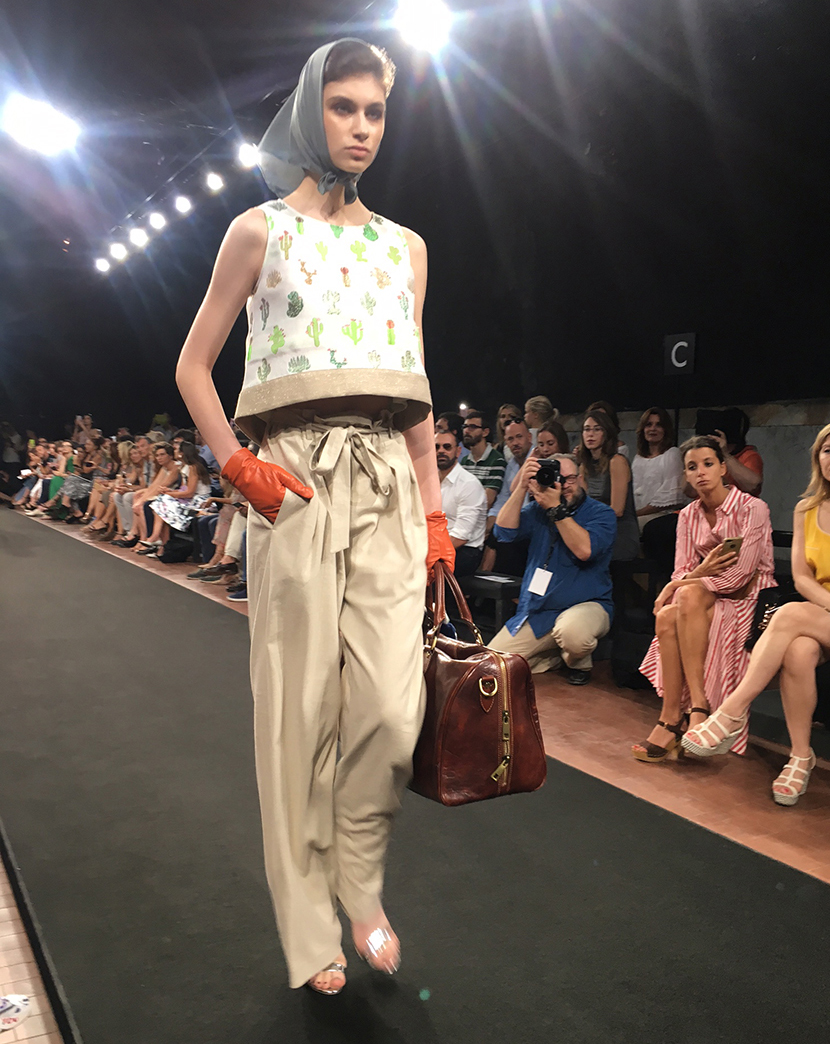 Moi Multiple sfila nell’ambito di Fashion Hub, sezione dedicata alla scoperta e alla promozione di talenti emergenti, anche se Francesca Ceccon ha alle spalle anni di collaborazione con importanti brand internazionali, il marchio Moi Multiple è giovane all’anagrafe, ma anche giovane d’aspetto. Sono infatti capi allegri, freschi e vivaci e questa collezione intitolata “Plus-que-parfait” è una rilettura in chiave giocosa degli abiti anni ’60, in particolare dei vestiti della nonna della stilista, donna estremamente elegante che la Ceccon ricorda come cristallizzata in quell’epoca dove la moda era fatta di gonne trapezio, tessuti broccati e applicazioni preziose. Plus-que parfait è infatti la ricerca del sublime, quella ricerca che la sua sofisticatissima nonna le ha involontariamente trasmesso e che Francesca ha saputo ironizzare e dissacrare con i suoi indumenti perfettamente sagomati e la sua grande attenzione alla modellistica, ma con quel tocco di leggerezza e festosità che trasmettono le sue collezioni.