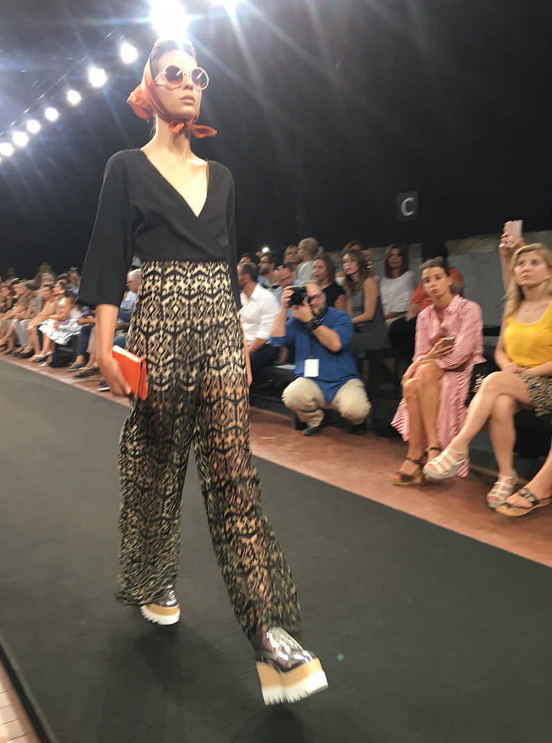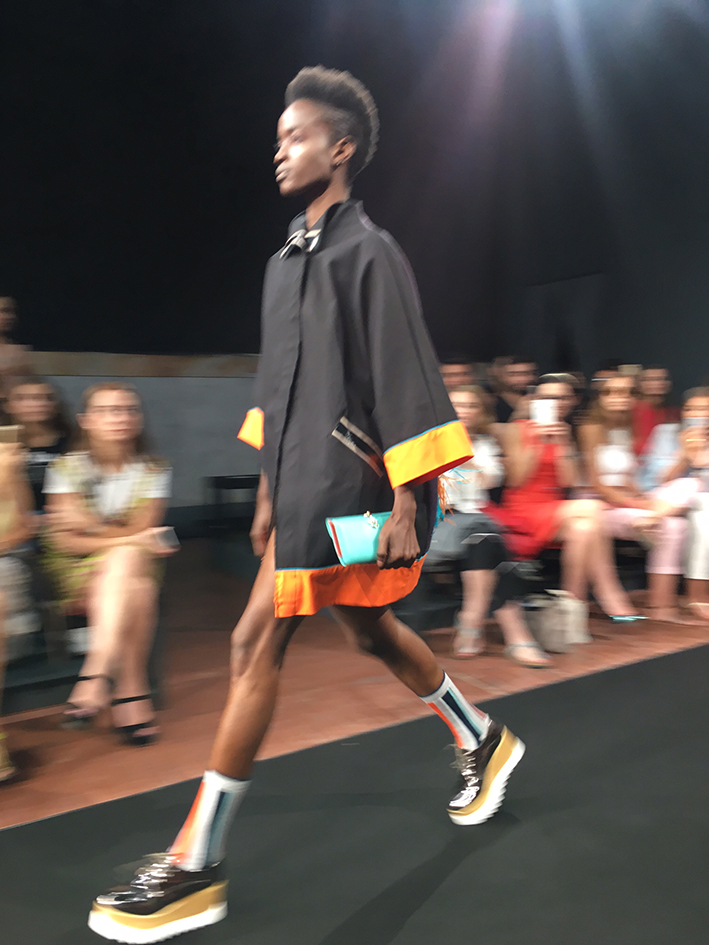 Le modelle sfilano con un micro-fulard sul capo, e indossano camicie di organza con ricami tribali, abiti, giacche e top trapezio, giubbotti in tessuto tecnico ricamati a mano, inserti etnici su linee classiche, gonne e top con bordi di pelliccia kidassia, e anche una tuta larga al ginocchio con tanto di nocca al collo ed evidenti richiami clowneschi a sottolineare lo spirito allegro del marchio e la multi- identità a cui il nome stesso si riferisce.