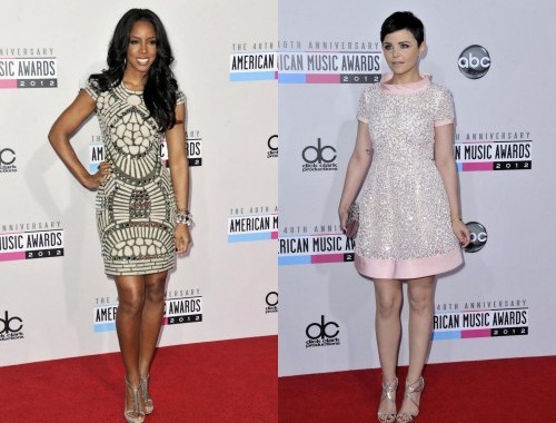 A sinistra: Kelly Rowland in Naeem Khan A destra: Ginnifer Goodwin in Oscar de la Renta A sinistra: Kelly Rowland in Naeem Khan A destra: Ginnifer Goodwin in Oscar de la Renta