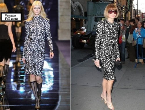 Anna Wintour con un abito Versace della collezione a/i 2012