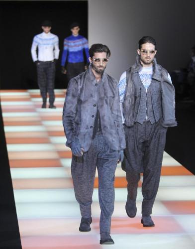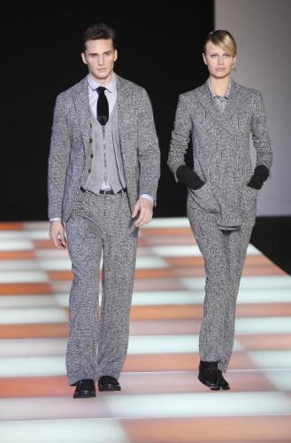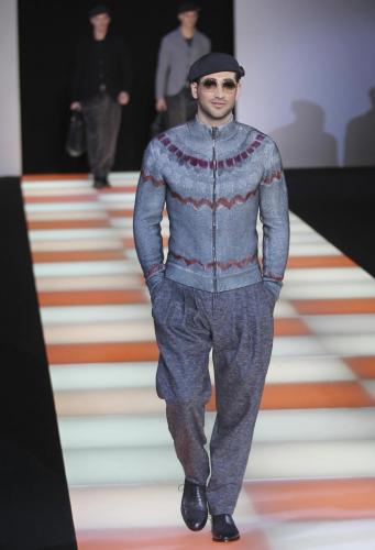 MILANO- Per l’autunno\inverno 2012 Armani disegna una nuova silhouette al corpo maschile. Spalle decostruite, giacche a corpo e pantaloni ampi, a 4 pinces, e stretti alla caviglia Le uscite in passerella, durante l’ultima sfilata moda uomo 2012, sono state spesso applaudite dal pubblico che annovera tra i presenti anche alcune stelle del cinema italiano: Neri Marcorè, Pierfrancesco Favino e Alessandro Siani.
