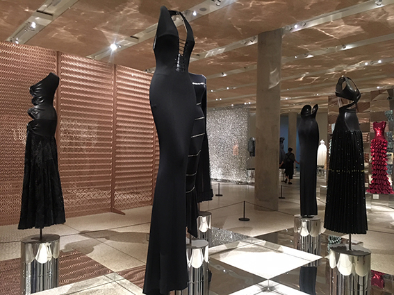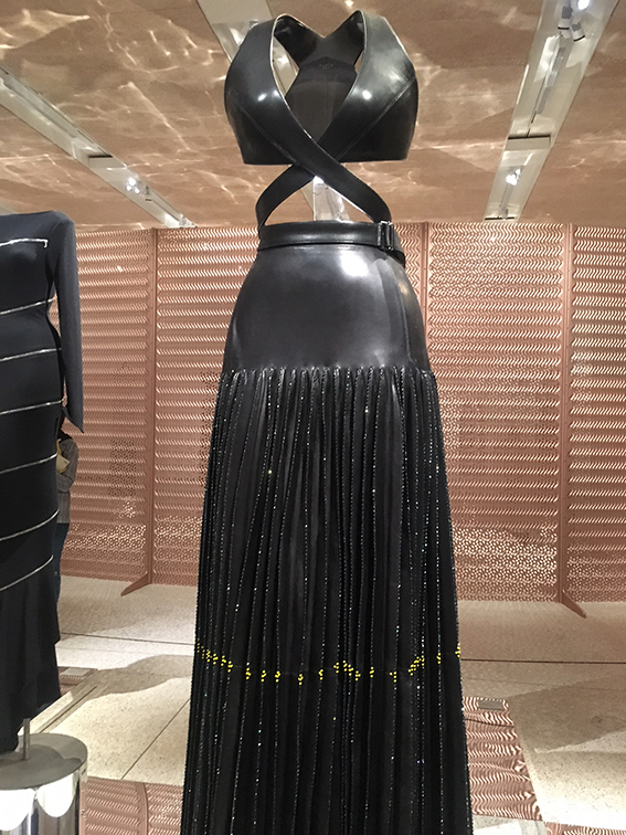 Scostumista-Azzedine Alaïa: The Couturier- Il 10 Maggio al Design Museum di Londra ha inaugurato la mostra Azzedine Alaïa: The Couturier – prima personale britannica che celebra il lavoro dello stilista tunisino. Concepita e co-curata dallo stesso Alaïa prima della sua morte, nel novembre 2017, la mostra illustra il suo incredibile viaggio tra scultura e couture, tra la sua natura anticonformista e la sua passione per la moda e per il corpo femminile. Nella sala al primo piano del museo è esposto lo straordinario lavoro, che copre la prolifica carriera del designer dai primi anni ’80 ai suoi ultimi capolavori verso la fine del 2017. Più di 60 capi rari (tra cui il vestito con zip, l’abito a fascia, la cintura corsetto, il corpo elasticizzato, il cuoio traforato) sono esposti nella mostra co-curata da Mark Wilson, Chief Curator del Groninger Museum, insieme a una serie di schermi architettonici appositamente commissionati da Alaïa ad amici intimi come Ronan & Erwan Bouroullec, Konstantin Grcic, Marc Newson, Kris Ruhs e Christoph von Weyhe, partner di Alaïa da molti anni. Ispirati e complementari ai capi in mostra, i lavori commissionati sono lo sfondo perfetto per le eccezionali creazioni di Alaïa che hanno plasmato il corso della storia della moda negli ultimi decenni. I capi sensuali e avvolgenti di Alaïa sono esposti insieme a cinque schermi personalizzati, progettati da importanti artisti del design contemporaneo. Ciascuno degli schermi realizzati in metallo e vetro che incorniciano i capi, sono stati creati in risposta al lavoro del couturier. “Non è una scenografia, volevamo che gli schermi facessero parte della mostra come gli abiti”, ha detto la curatrice del Design Museum Gemma Curtin, che ha lavorato al fianco del lead curator Mark Wilson nello show. Ciascuno degli schermi è utilizzato per raggruppare i capi in 11 diversi temi come Sculptural Tension, che si concentra sull’uso del metallo nella creazione di abiti. Un’altra sezione denominata Altri luoghi, Altre culture evidenzia l’influenza dell’Africa sulla selezione dei capi. Questi temi ignorano la cronologia e si concentrano invece sulle diverse tecniche e materiali adottati dal designer. Una serie di fotografie scattate dall’artista Richard Wentworth si allineano sulla parete posteriore dello spazio espositivo principale. La morte improvvisa di Alaïa nel novembre 2017 avrebbe potuto significare la fine dello show, tuttavia, Wilson e Maison Alaïa decisero di andare avanti, specialmente dopo aver scoperto la grande mole di lavoro su cui Alaïa stava lavorando magistralmente. Avendo già lavorato insieme per le mostre di Roma e dei Paesi Bassi, lo show al Design Museum offre agli spettatori la possibilità di accedere oltre ai pezzi iconici dello stilista, anche alle più recenti creazioni couture. Soprannominato “The king of cling”, Alaïa era famoso per la sua maestria nella sartoria e ha creato capi innovativi che avevano la fluidità della scultura. E per questa mostra ha allungato molti dei vestiti dando così ai capi un’altra funzione, ovvero non quella di essere indossati da una donna, ma trasformandoli in vere e proprie sculture di tessuto che ben si amalgamano con gli schermi posti sul retro creando una vera e propria opera visiva. di Annapaola Brancia d’Apricena