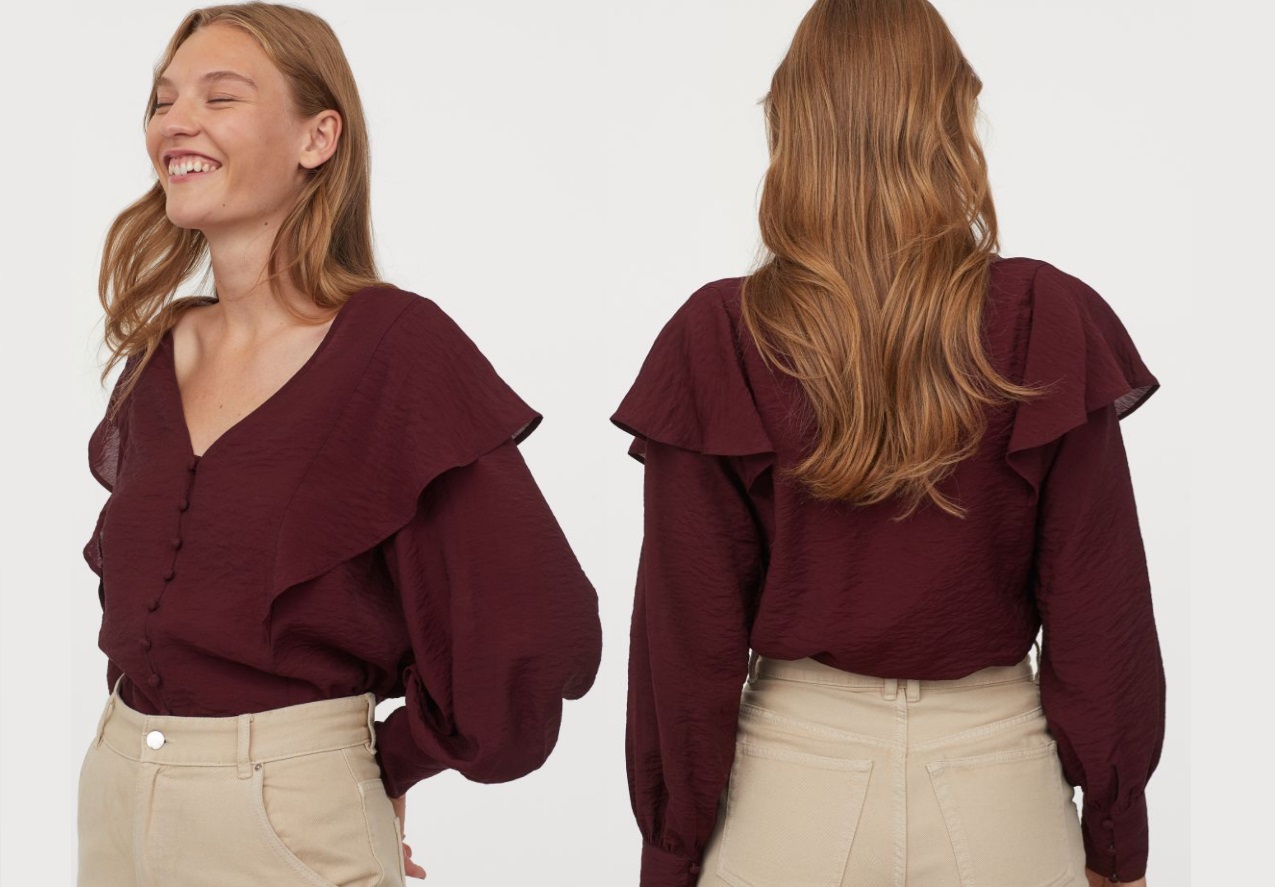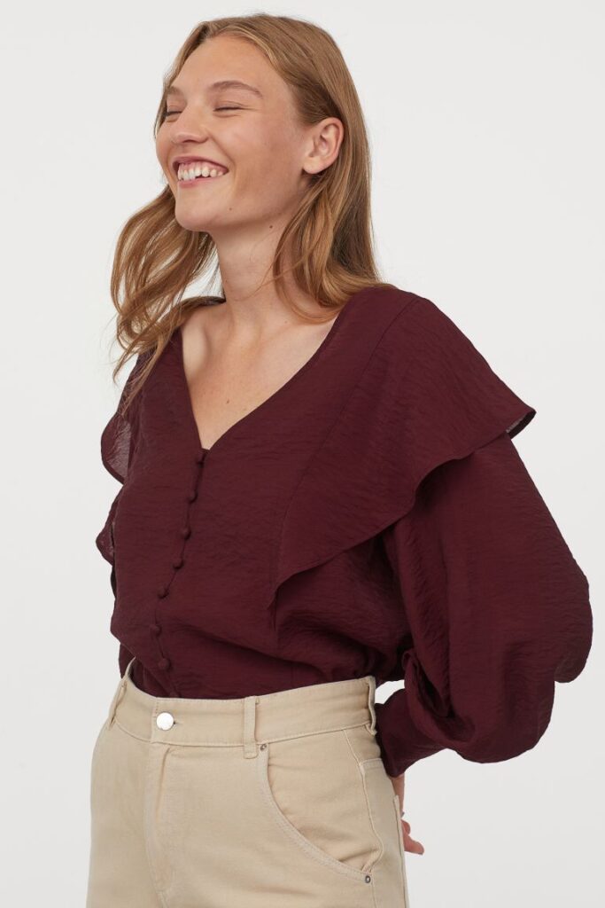 Se sei alla ricerca di un capo strategico, non dovresti farti sfuggire questa blusa H&M. Morbida, nella perfetta tonalità di burgundy autunnale, questa blusa salverà tantissimi tuoi outfit.