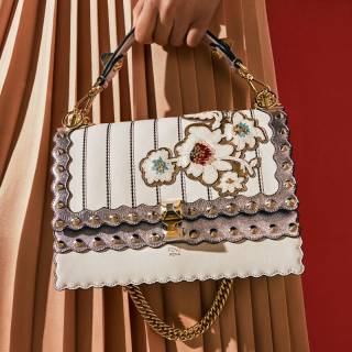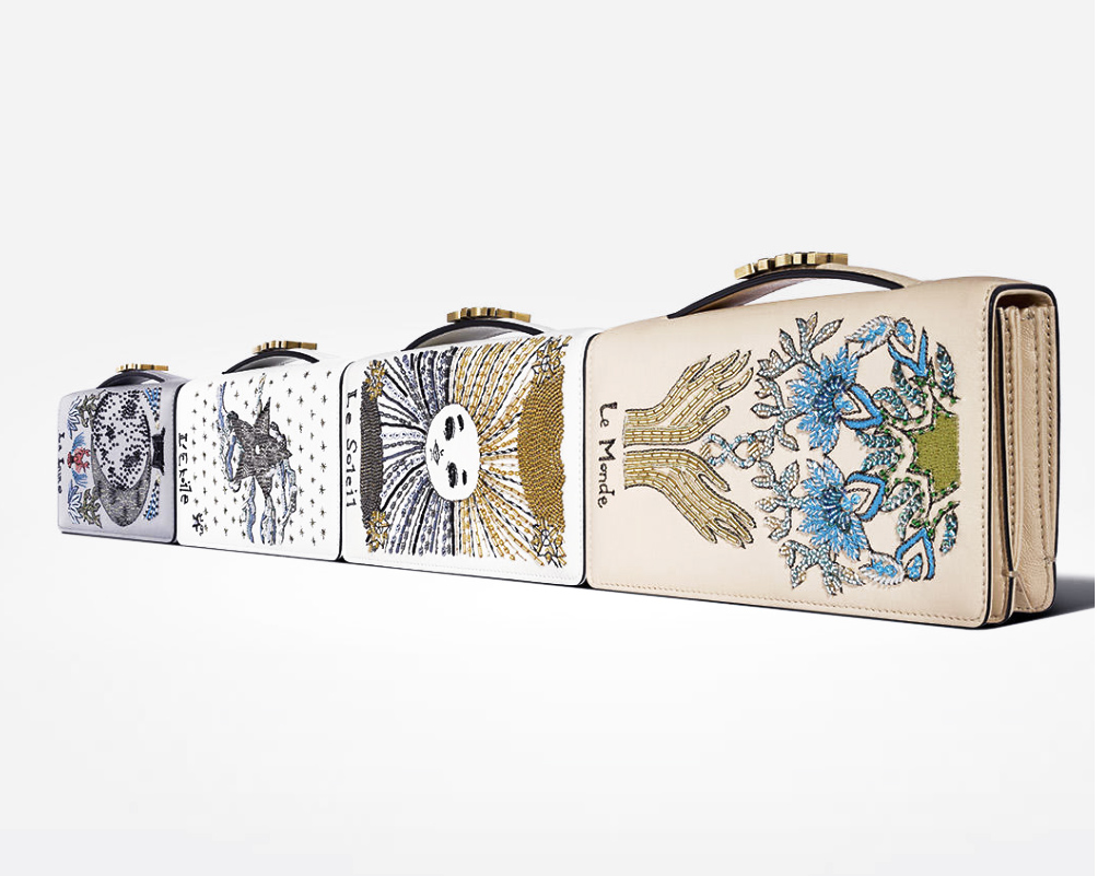 Viene voglia di appenderle ad una parete e guardarle come fossero quadri. Le borse diventano tele per sbizzarrire la fantasia degli stilisti. Attraverso ricami, applicazioni e intarsi queste opere d’arte da portare in mano o a tracolla trasformano anche il più banale dei look in qualcosa di unico e sorprendente. Louis Vuitton arricchisce la Twist MM con un elegante e colorato tucano, omaggio all’incantevole foresta pluviale, paillette, applicazioni di pelle ricamate e decorazioni effetto tuffetage sono state orchestrate magistralmente per riprodurre nei dettagli il piumaggio di questo meraviglioso uccello. La tradizione, nel mondo dell’arazzo, vuole che nella tessitura sia riportata la firma dell’artista che ha realizzato il cartone, il marchio della fabbrica e, a volte, il secolo. Sembrano degli arazzi le borse che Chanel realizza attraverso ricami di velluto su pelle di vitello, e anche qui come da tradizione la firma è data dall’iconica chiusura con la Doppia C. Dior punta sul misticismo e ricama con metallo anticato le carte dei tarocchi su pochette in pelle di vitello, c’è la carta del Diavolo, quella della Luna, del Sole, delle Stelle, del Mondo e dell’Arcano Senza Nome. La designer di origine italo-brasiliana, Paula Cademartori, fondatrice dell’eponimo marchio, deve il suo successo immediato proprio all’arte della decorazione e alla cura nei dettagli segno distintivo del suo brand, e per il prossimo inverno Petite Faye, Alice, Rachel, Twi Twi e Mae sono le borse a mano e a tracolla in vitello e camoscio con intarsi multicolor e fibbia in metallo lucido che la stilista ha ideato. Riaffiorata dagli archivi Gucci degli anni Settanta, tra i decenni più distintivi nella storia della Maison, la GG Marmont si arricchisce con ricami e cristalli, il romanticismo distintivo della nuova visione creativa di Gucci si riflette nelle preziose patch che decorano questa borsa in velluto matelassé con motivo chevron. Appliqué floreali, libellule, farfalle, nocche e piume ricamate con paillette e cristalli Swarovski ornano la parte frontale di questo modello che si chiude con la fibbia Doppia G in metallo anticato color oro d’ispirazione anni Settanta. Un vero e proprio quadro cubista è raffigurato sulla borsa a mano in velluto ricamato di Prada, poi ci sono le già iconiche borse a tracolla in velluto effetto trompe-l’oeil in quattro versioni colorate, tutte must-have. “Sono borse dalle linee strutturate e funzionali, ma non rinunciano a un tocco funny” spiga Silvia Venturini Fendi a proposito delle Kan I, le it bag di Fendi lanciate questa primavera con una collezione dagli accostamenti cromatici pastello/confetto ispirata a Marie Antoniette, quando viveva al Petit Trianon, mentre per il prossimo inverno saranno colori più audaci e decisi a decorare le Kan I, restando pur sempre su un mood allegro e giocoso. di Annapaola Brancia d’Apricena