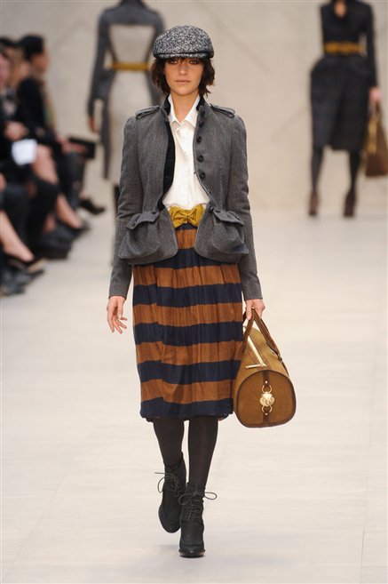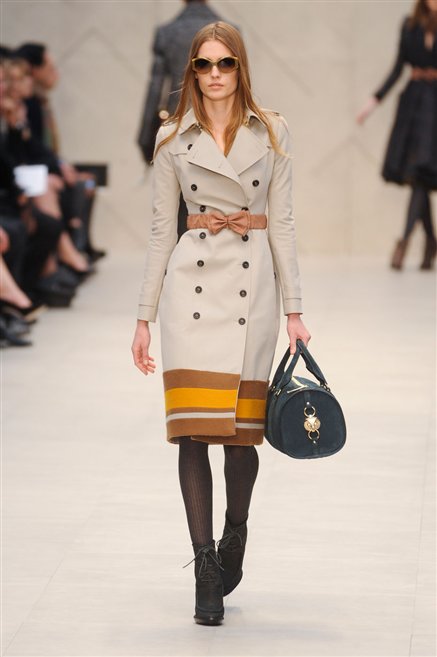 La sfilata è anche l’occasione perfetta per il lancio dei nuovi accessori, come la borsa Burberry Orchard, la borsa Burberry Barrel e gli stivali Burberry Field, stivaletti di camoscio o di cuoio stringati che sono una evoluzione della forma del mocassino.