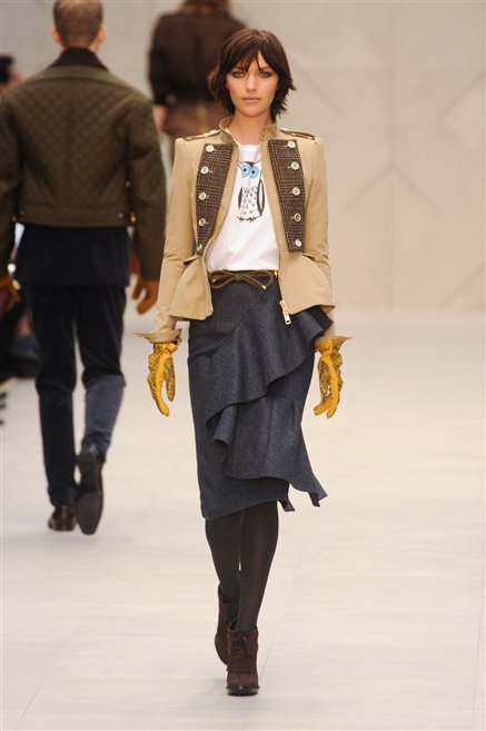 Una collezione quella di Christopher Bailey (direttore creativo del marchio) che da una parte fonde il mondo intero con quello reale e quello “digitale” dei maxi schermi e di internet, e dall’altra unisce, con un tocco molto british, le atmosfere della città e della campagna.
