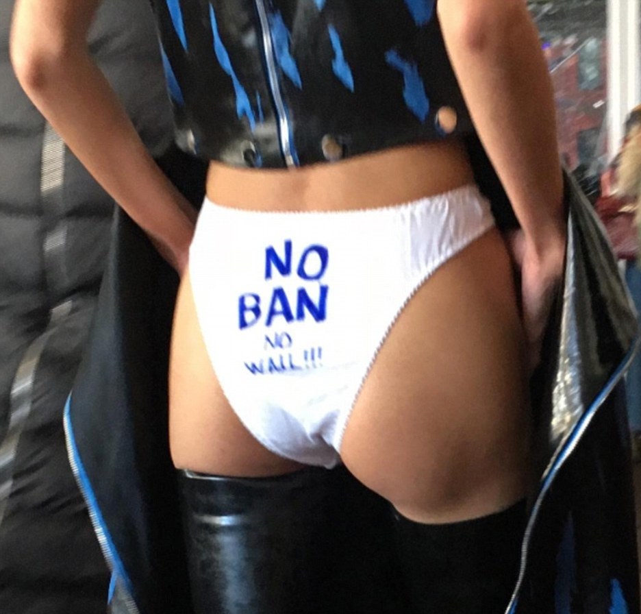 Ancora più esplicito è stato invece lo stilista messicano di 32 anni, Raul Solis. Sulle passerelle newyorkesi della settimana della moda, Solis ha portato la protesta contro il “muslim ban”, il divieto di immigrazione per i residenti di alcuni Paesi islamici che sta cercando di introdurre il presidente Usa, ed anche contro il muro al confine meridionale degli Stati Uniti. LRS Studio, linea disegnata dallo stesso Solis, ha fatto sfilare le sue modelle con delle scritte piuttosto esplicite sul retro della lingerie: “No al bando”, e anche “fuck the wall”, ossia “a quel paese il muro”.