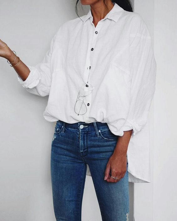 In fondo, abbinare la camicia bianca è davvero semplicissimo! Se desiderate optare per un outfit casual, scegliete l’abbinamento della camicia con jeans e giacca in pelle. Basta aggiungere un tacco ed oplà, siete pronte per l’aperitivo. Se invece avete intenzione di intraprendere una lunga sessione di shopping, basta scegliere un mocassino ed il look easy chic è fatto.