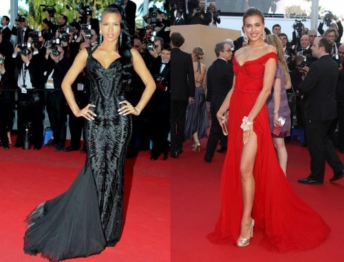 “Il rosso e il nero” griffato Cavalli per Irina Shayk e la cantante Cassie. La prima è apparsa in un meraviglioso abito Roberto Cavalli monospalla color rosso che, con il suo spacco vertiginoso, valorizzava le sue lunghe gambe. Orecchini di diamanti e sandali con plateau dorati completavano il look.