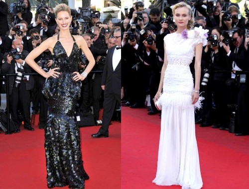 Infine, Diane Kruger è apparsa con una mise estremamente diversa dalle altre, con un abito dal sapore romantico ed etereo di Nina Ricci con gonna in chiffon, ricami sui fianchi e sul corpetto e pizzo sulla scollatura. Acconciatura retrò anni ’40, clutch argento Judith Leiber e bracciale di diamanti completavano la mise. Angelica…. perfetta.