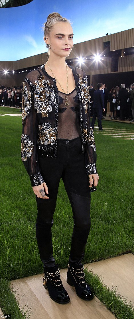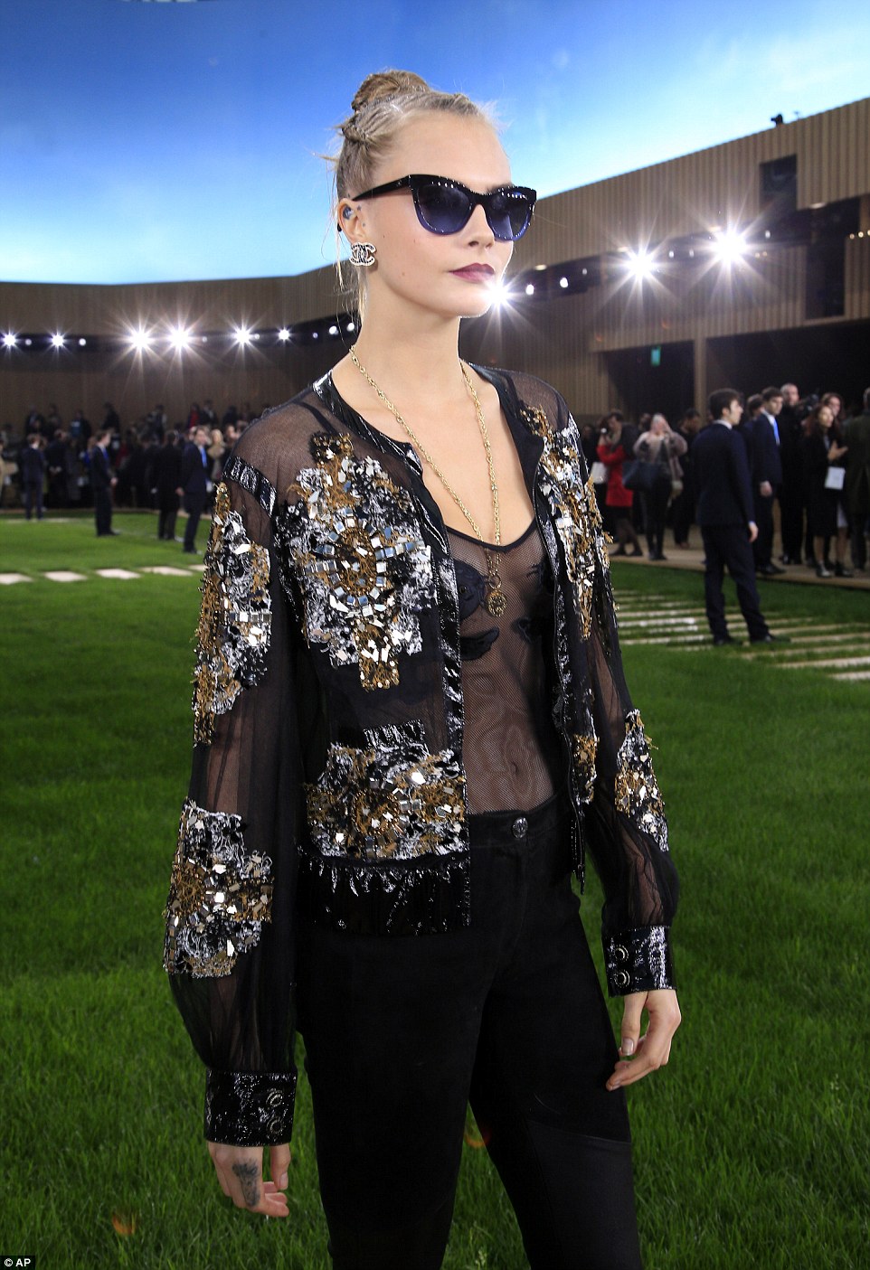Cara Delevingne, top trasparente e pailettes da Chanel5