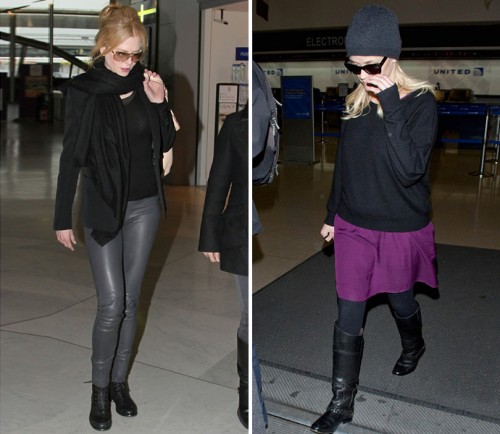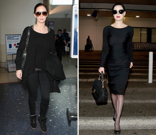 Aeroporto che vai… Vip (e mise) che trovi! Ecco una raccolta di fotografie di stelle “paparazzate” negli aeroporti di tutto il mondo. E, vedendo le immagini, possiamo arrivare ad alcune conclusioni: fatta qualche eccezione la maggior parte delle celebrities ama, per viaggiare, colori scuri, pratici pantaloni o legging. Fatta eccezione per Dita Von Teese che invece risulta elegantissima e non rinuncia ai tacchi anche in tenuta da viaggio.