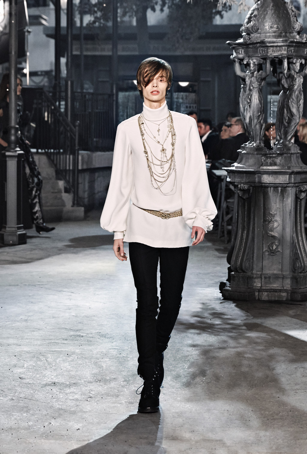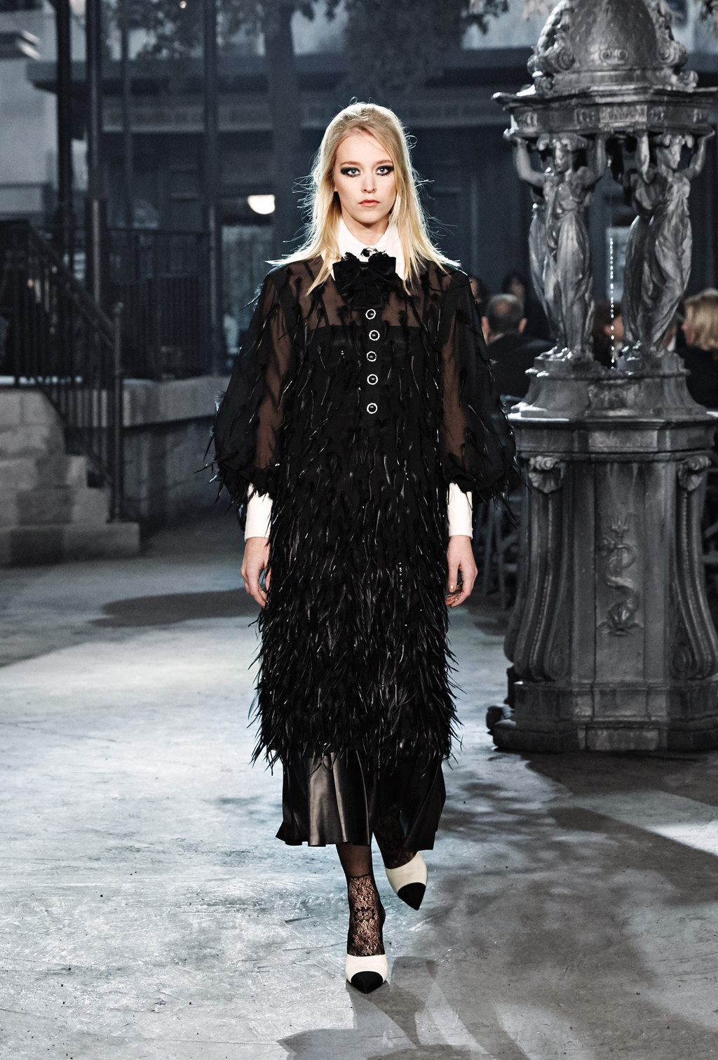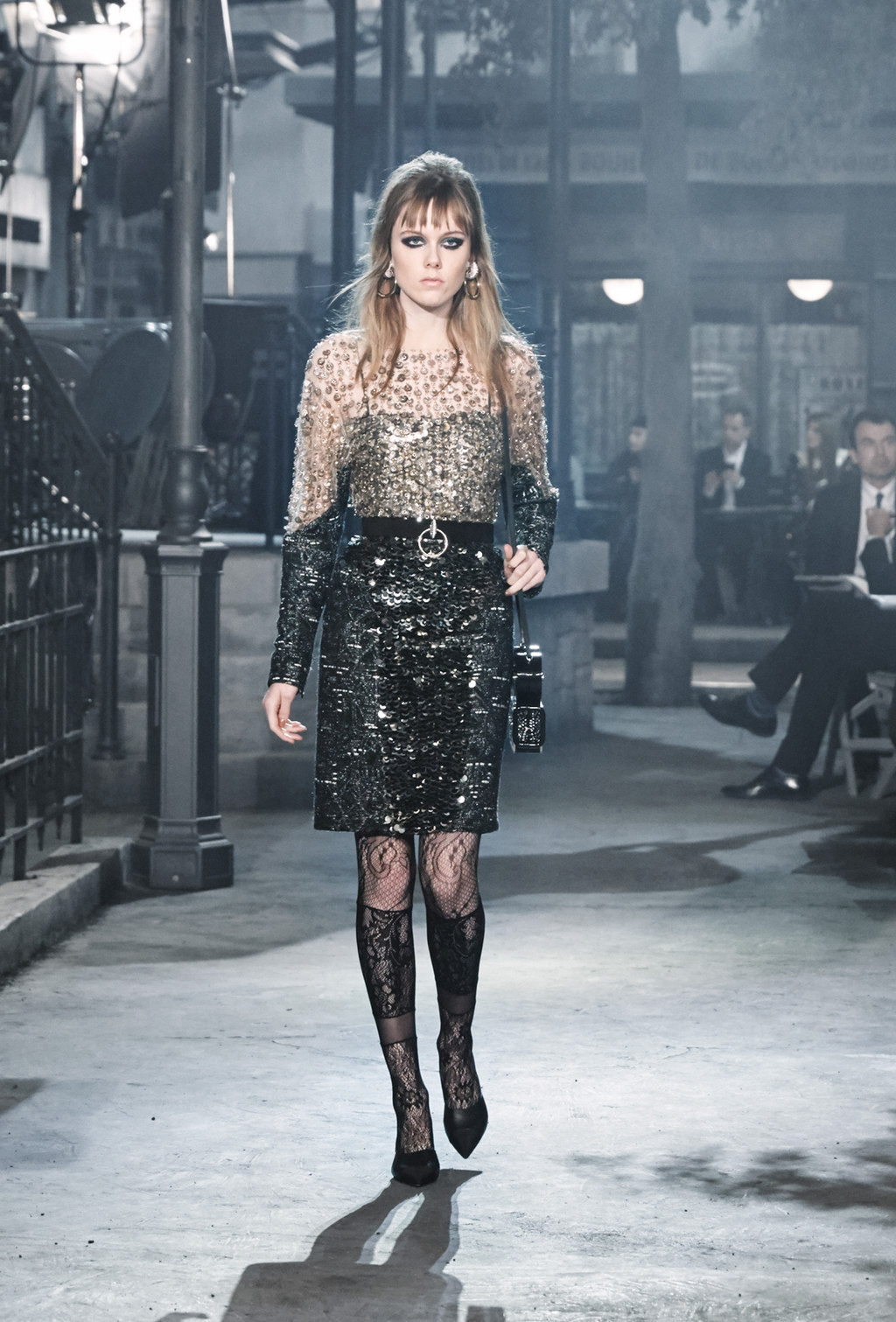 In un’atmosfera metropolitana sfilano le modelle tra viali alberati, un garage, un fioraio, il caffé, la boulangerie, e anche un cinema dove proiettano il cortometraggio “Once and forever” diretto dallo stesso Karl Lagerfeld e con protagonista Geraldine Chaplin (Coco da vecchia) e Kristen Stewart (Coco da giovane). E dal front-row ad applaudire il cortometraggio e la sfilata oltre alle due protagoniste del corto c’erano anche Carolina di Monaco con la figlia Alexandra, Anna Mouglalis, Rooney Mara, Kasia Smutniak, Zhoiu Xun.
