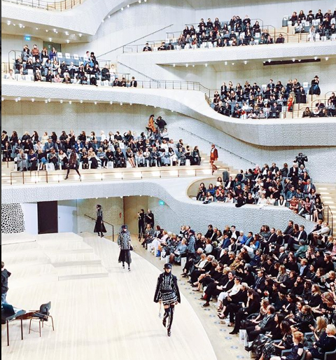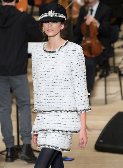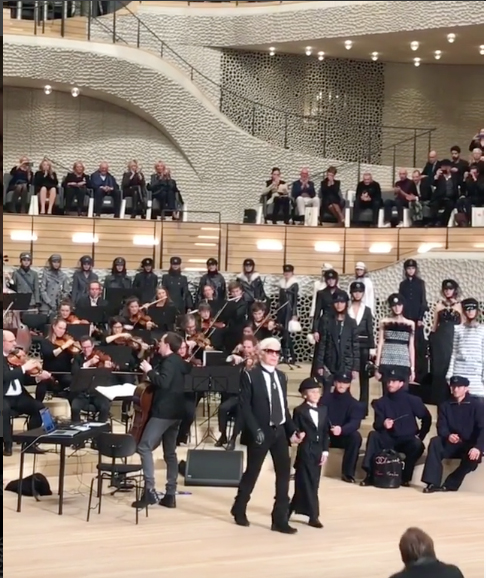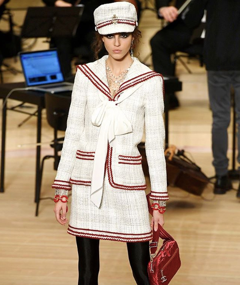 Scostumista-Chanel Métiers d’Art-Karl Lagerfeld ha scelto la sua città natale per presentare ieri la collezione Chanel Métiers d’Art. Dopo Dallas, Salisburgo, Roma, Parigi, è Amburgo la meta designata per far sfilare questa prestigiosa collezione. In una location attesa da anni: la sala concerti Elbphilharmonie progettata dal famoso studio di architetti Herzog & de Meuron, completata a Gennaio scorso. Mètier d’Art è una sfilata itinerante concepita da Karl Lagerfeld in cui il luogo dove si svolge ha anche il ruolo di guida e ispirazione della collezione. Quest’anno un’Amburgo degli anni ’60, città portuale via vai di merci e di marinai. Il progetto nasce con l’intento dare risalto ai laboratori artigianali che fanno parte di Paraffection, un’azienda aperta da Chanel nel 1997, che ingloba artigiani francesi come Lemarié per le piume e le camelie, Lesage per i ricami, Lognon per la plissettatura, Desrues per i bottoni, Massaro per le scarpe e tutte quelle aziende che da anni collaborano con la Maison. Importante anche la partecipazione di Maison Michel per i cappelli che completano le silhouette di Chanel. Lagerfeld “ruba” dal guardaroba dei marinai e rielabora in versione femminile i giacconi doppiopetto, i maglioni pesanti in cashmere realizzati dal laboratorio scozzese Barrie rilevato ormai dalla Maison Chanel. Maglie abbinate a leggere gonne di voile ma anche sexy minidress con scaldamuscoli al ginocchio accompagnano i classici tailleur in tweed. Oggetto cult: il cappello con visiera in tweed con spille e ricami, legato al collo da una veletta di tulle. A sfilare anche le giovani it girl: Lili-Rose Depp e Kaia Gerber. Nel front row non poteva mancare Kristen Stewart, testimonial della collezione Métier d’Art, Anna Muglalis e Tilda Swinton. La musica dal vivo accompagna la sfilata e una standing ovation per Kaiser Karl come sempre accompagnato dal piccolo Hudson Kroenig. di Annapaola Brancia d’Apricena
