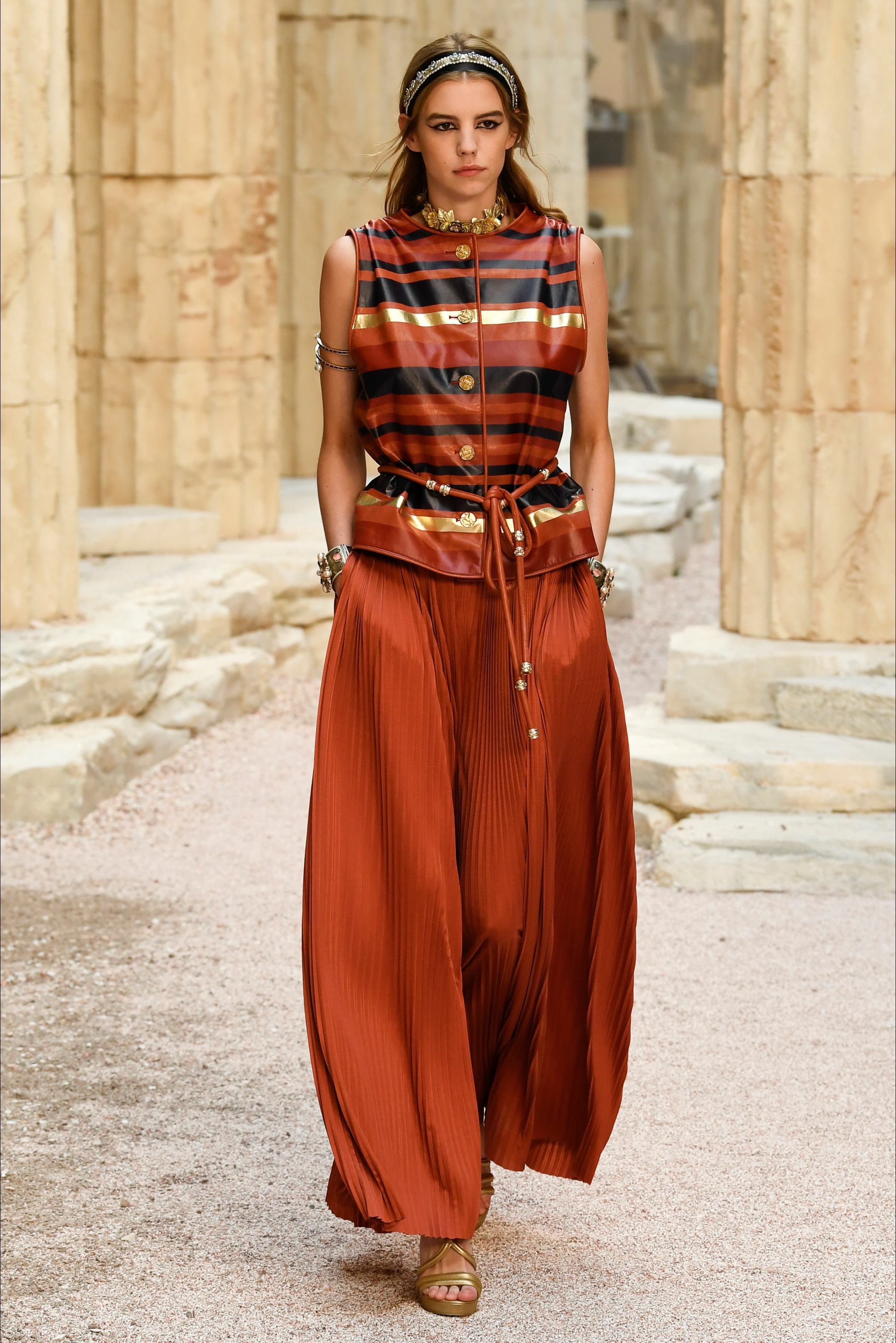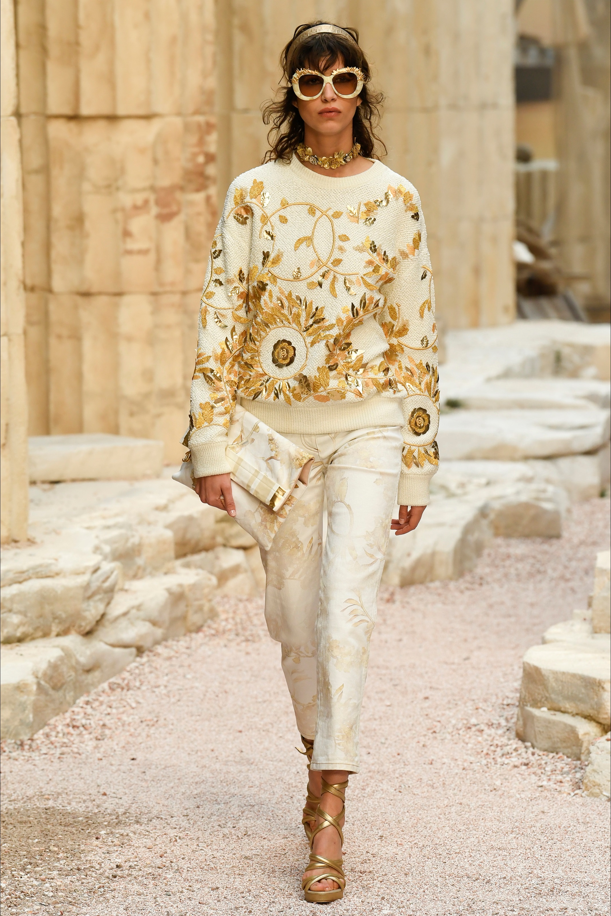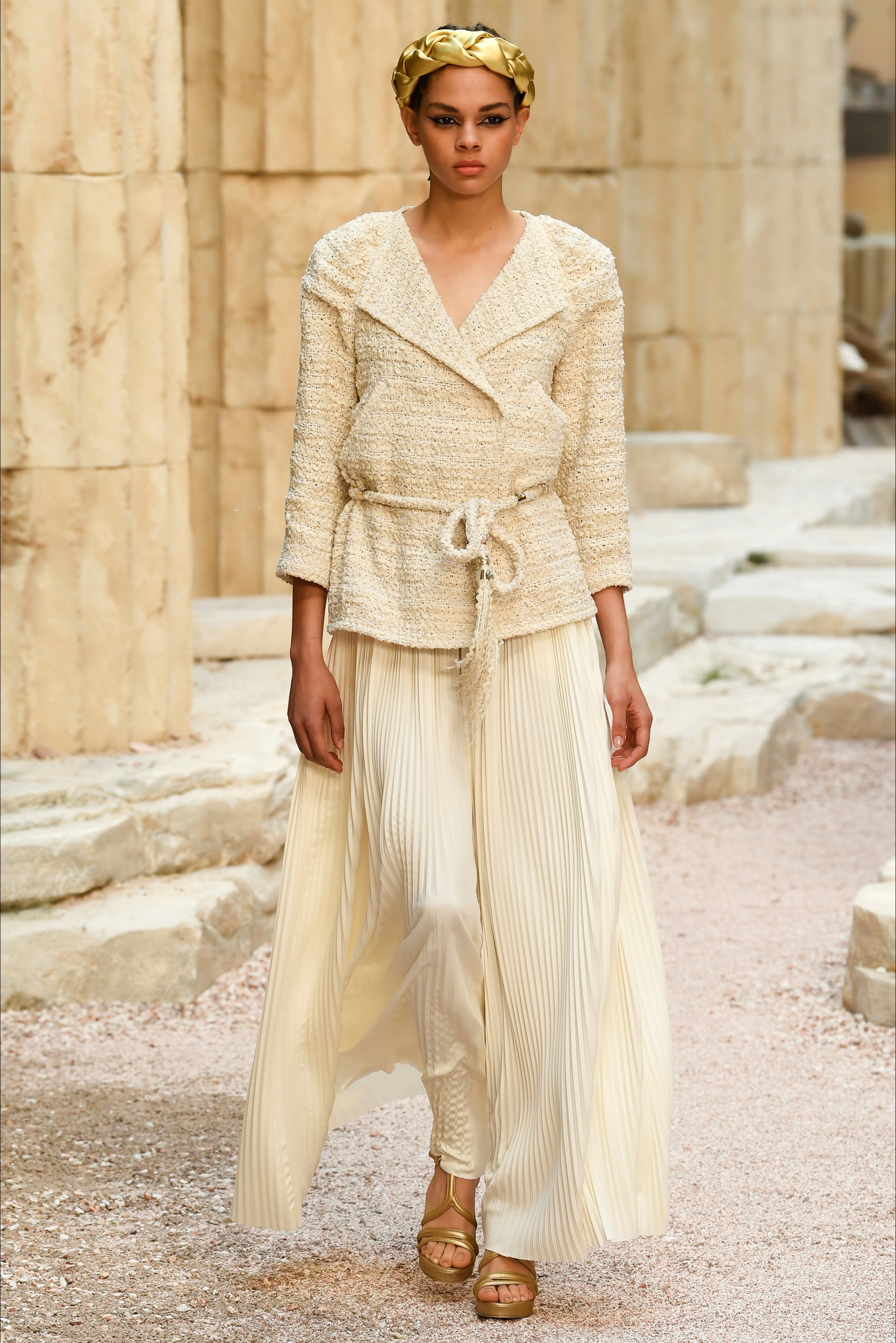 I colori predominanti di questa collezione sono il grigio, il nero, il beige, il bianco e tutti quei colori che ricordano l’antica grecia, dall’arancione al giallo passando per il bronzo. I materiali sono morbidi, via libera quindi alla seta, al cotone, allo chiffon ma anche alla rigidità della pelle e del denim. Di seguito, ecco le foto della pre-collezione primavera/estate 2018 firmata Karl Lagerfeld per Chanel.