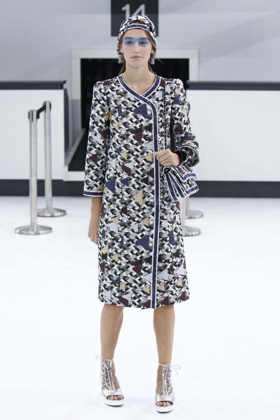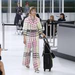 Lo stile è casual, comodo e da viaggio, scarpe prevalentemente basse, modelle con il trolley in passerella, abiti colorati e tanti accessori, dagli occhiali da sole, ai cappellini, ai classici foulard, elemento immancabile in ogni linea della maison. Si tratta di un’alternanza di completi glamour e di più classici tailleur, con pausa obbligata al banco del check-in. La compagnia è, neanche a dirlo, la Chanel Airlines. E alla fine tra i finti passeggeri arriva anche Karl Lagerfeld che, come detto, è accompagnato pèer l’occasione dall’ex musa e testimonial Cara Delevigne che dopo una vita passata sotto i riflettori, lo scorso agosto ha dichiarato a soli 23 anni ufficialmente di voler dire addio alle passerelle e di voler diventare una attrice affermata.
