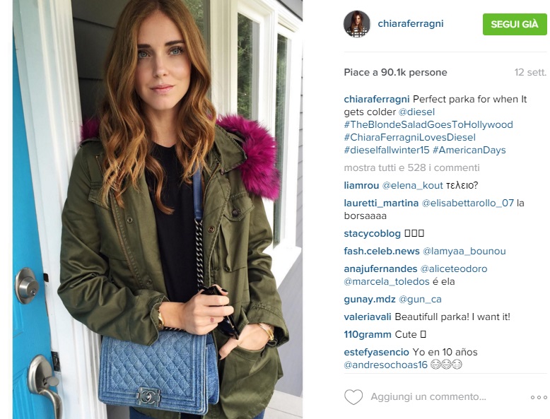 MILANO – Chiara Ferragni, passione parka: ecco i modelli più trendy FOTO. È diventato il vero must-have della stagione invernale: comodo, trendym caldo e super fashion il parka è un capo passepartout. Non è un caso se, ormai, moltissime vip e fashion blogger non possono farne a meno. Il Parka, infatti, grazie al carattere versatile risolve qualsiasi look e rende glamour anche le mise più semplici. Vera e propria “paladina” del Parka è Chiara Ferragni, la The Blonde Salad che, con il suo blog, si dice in giro che fatturi cifre da record. La Ferragni, ovviamente, non è l’unica che non è rimasta immune al fascino del parka, basti pensare a Melissa Satta che spesse volte è stata pizzicata a passeggio per Milano con un caldo parka verde.
