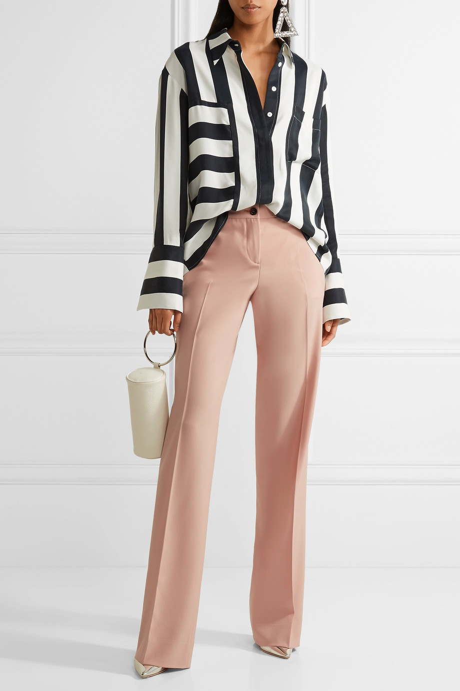 Striped satin-twill wide-leg pants Striped satin-twill wide-leg pants