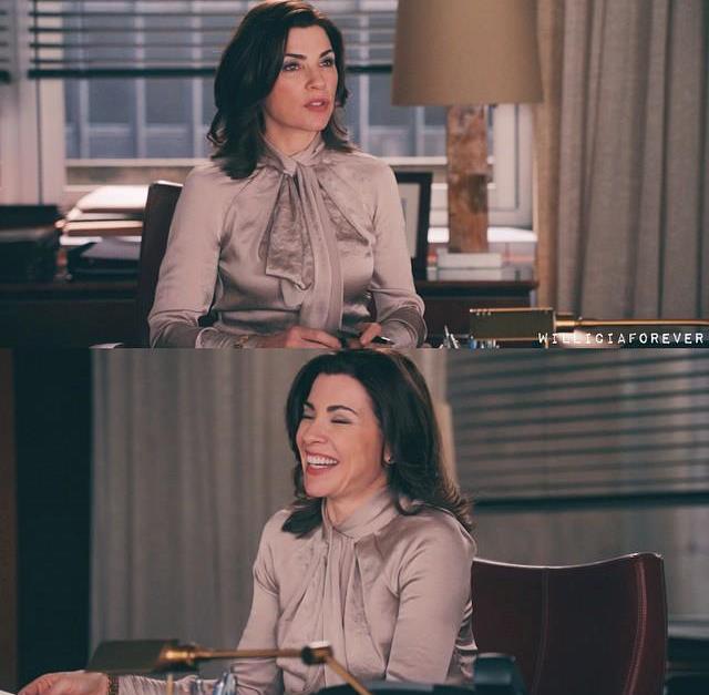 - “L’abito ha il potere di infondere un tocco di ottimismo. «Fate come Florrick — suggerisce l’esperto —. Iniettate nel vostro guardaroba tocchi di rosso (in tutte le sfumature), il blu marino, il verde, il celeste, ma anche il giallo. Soprattutto ora che sono tornati di moda. Ma per un’occasione professionale, se non volete rischiare di sentirvi troppo sotto i riflettori, seguite la regola usata sul set dell’avvocatessa Alicia: optate per colori mai troppo luminescenti o vistosi. Il cappottino rosso con abitino scuro (borsina nei toni del rosso e decolletté color cipria) dona allo spirito sbarazzino chic di Renee Zellweger”.