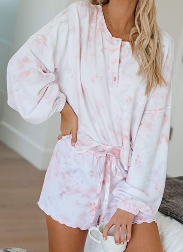 Il completo da casa primaverile di HenzWorld è disponibile in 8 colori e due stili diversi e ha taglie che vanno dalla S alla XXL. Entrambe le versioni includono dei pantaloncini a vita alta con elastico in vita e un laccio regolabile. Per quanto riguarda la parte di sopra, invece, puoi scegliere tra un maglioncino con maniche a sbuffo e corto in vita, oppure uno con bottoni sul davanti e maniche lunghissime con elastico ai polsi.